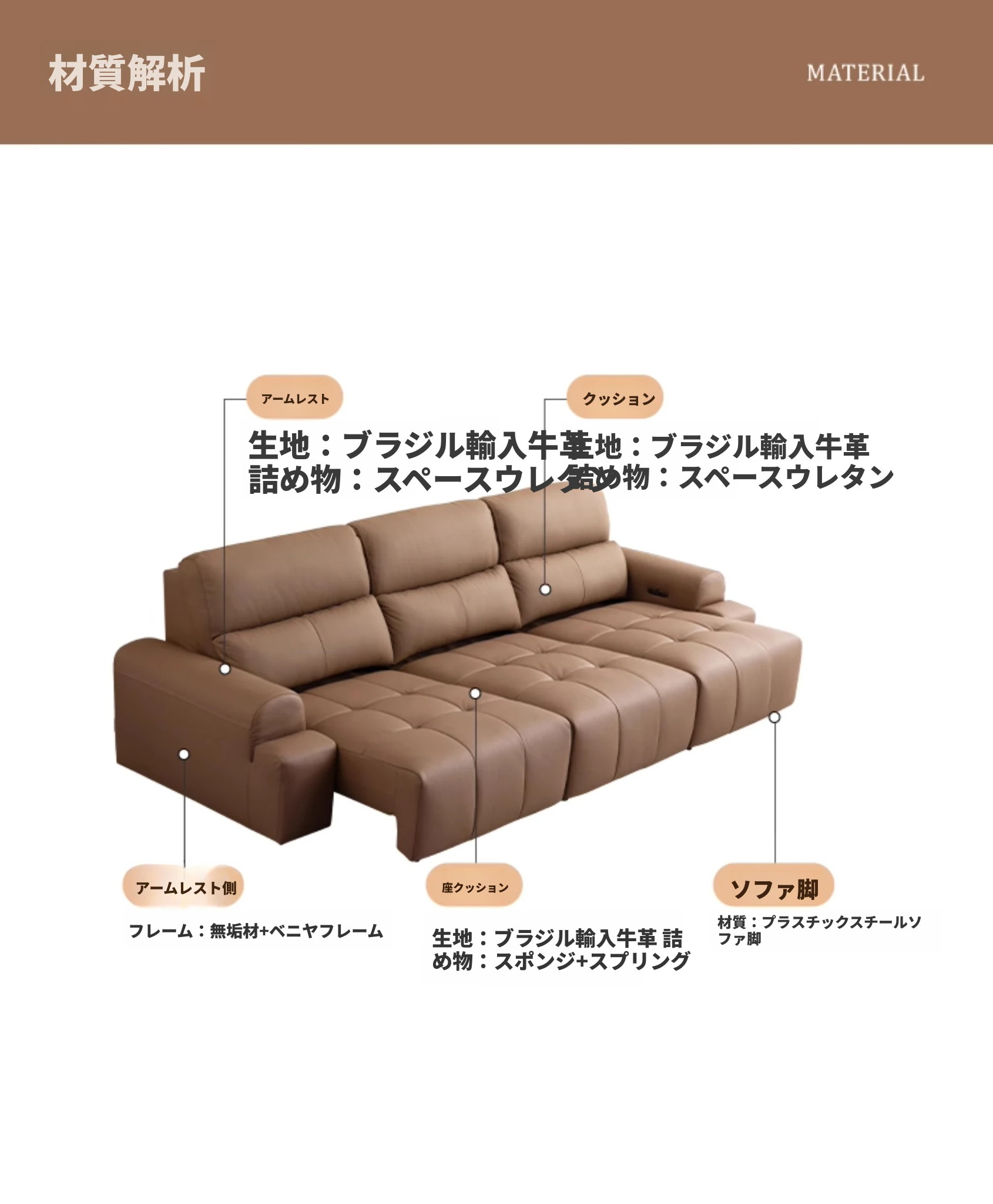 ココブラウン-3人掛け3電動ソファベッド-3.00M-30日発送