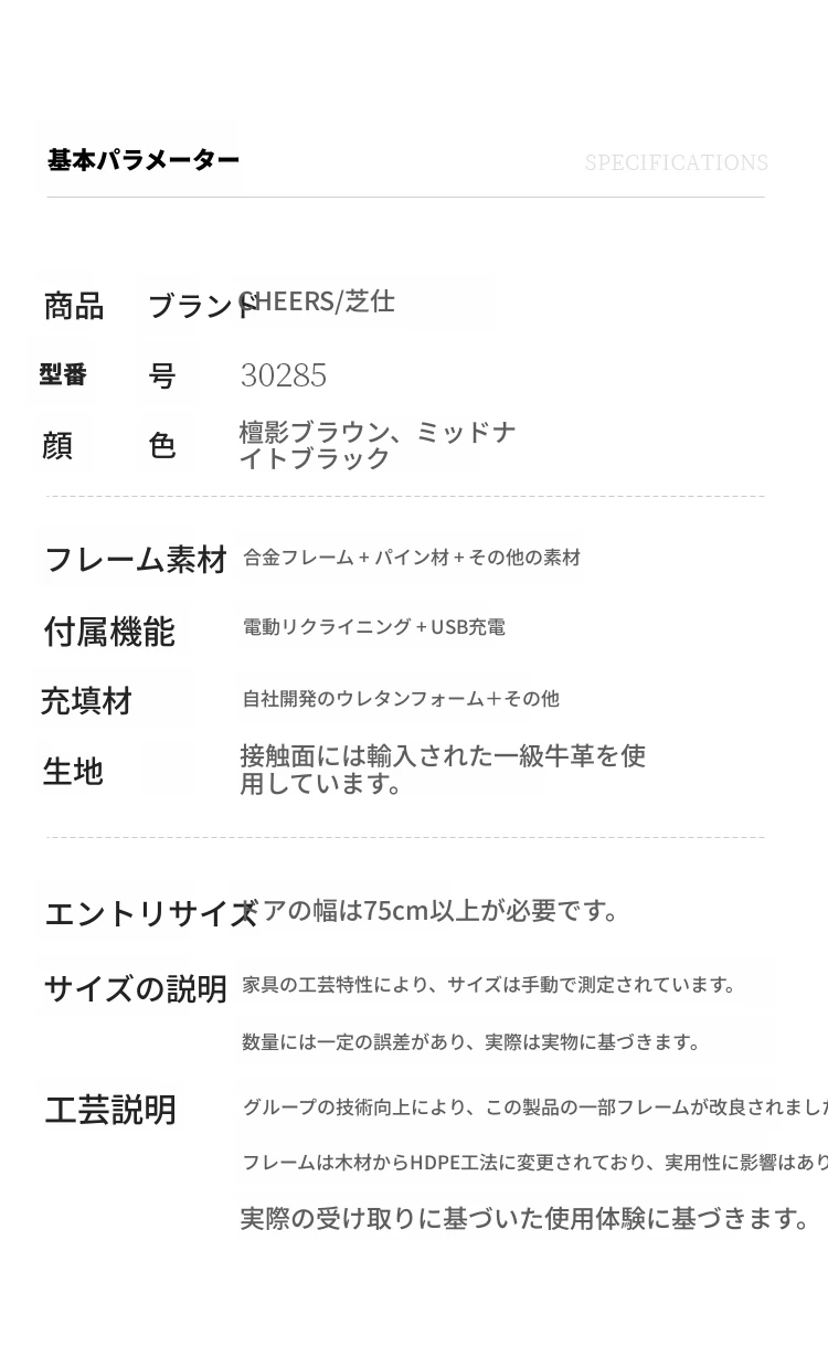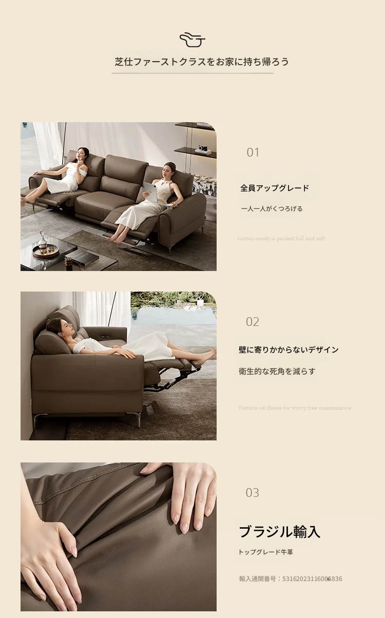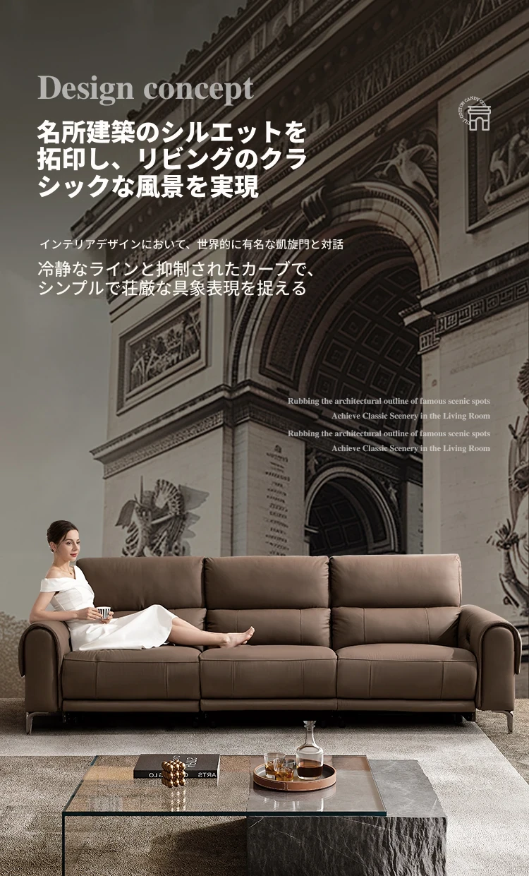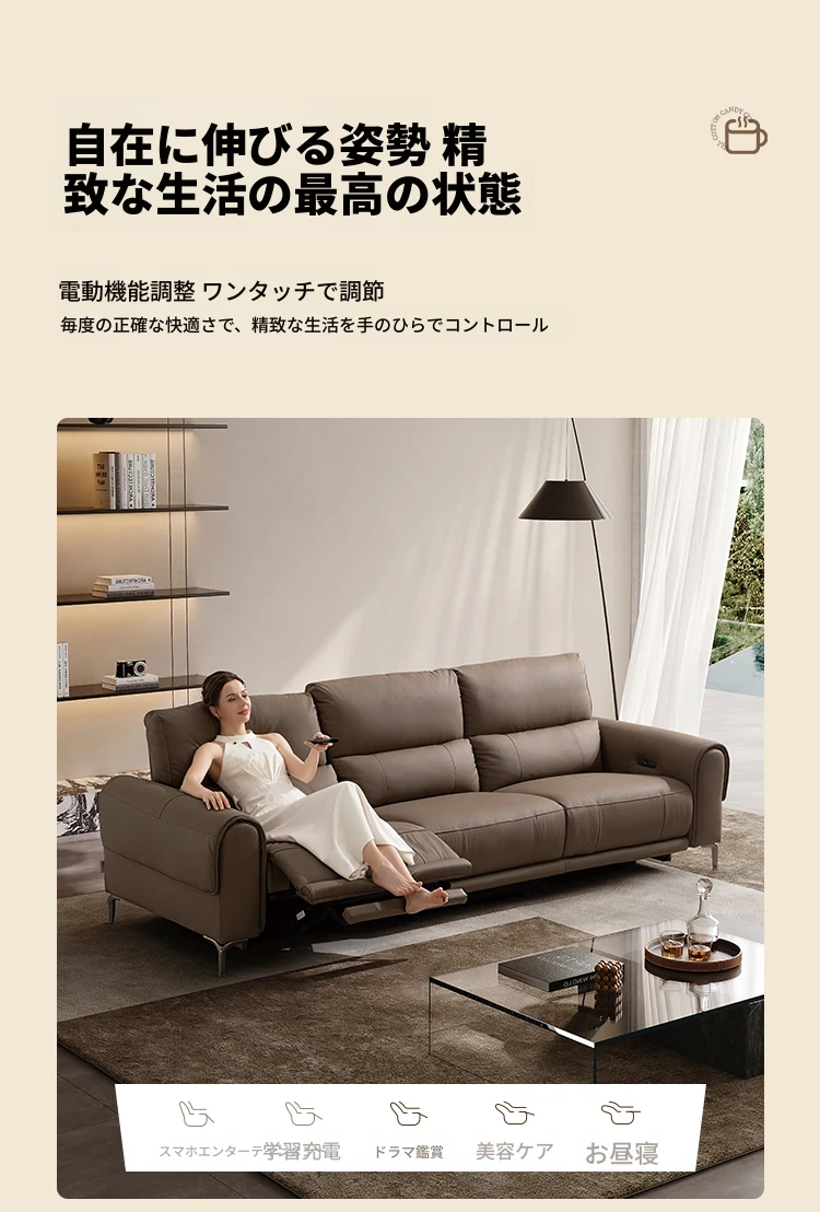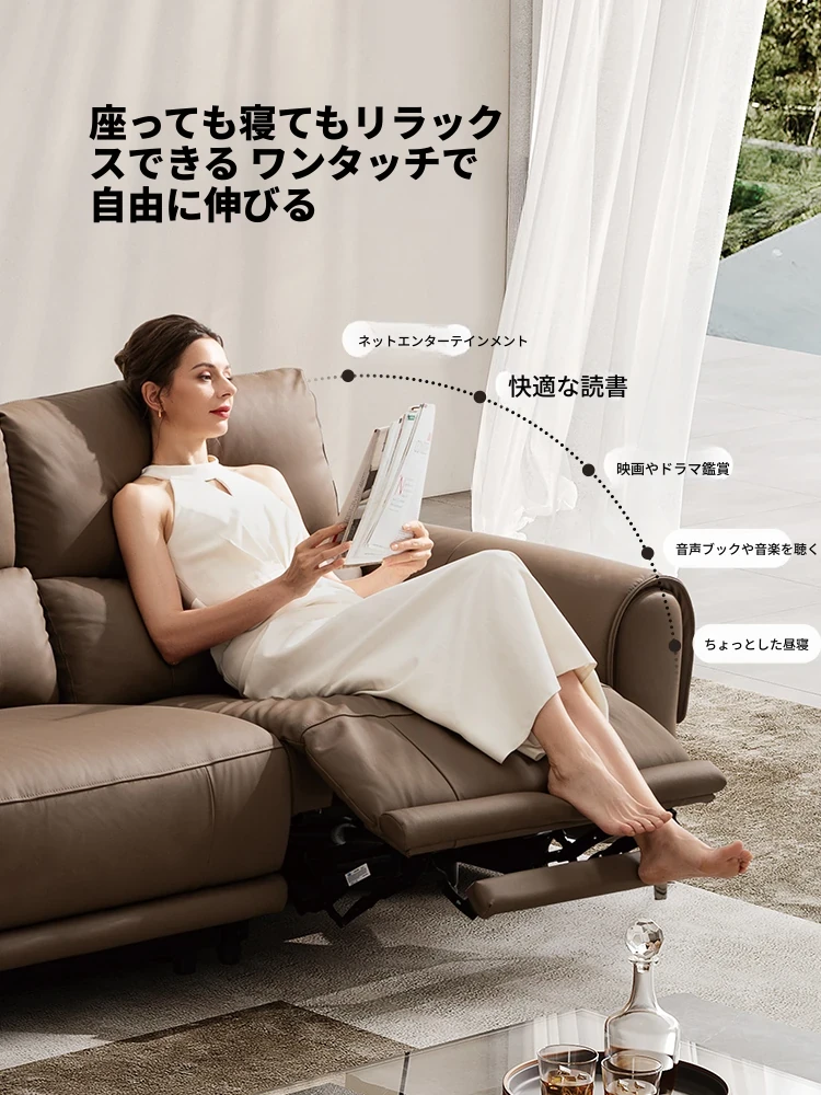 芝华仕エグゼクティブクラス イタリアンミニマリスト 本革電動ゼロ・グラウンド機能 リビング用ストレートソファ30285 - スタイリッシュで快適な空間を演出!
