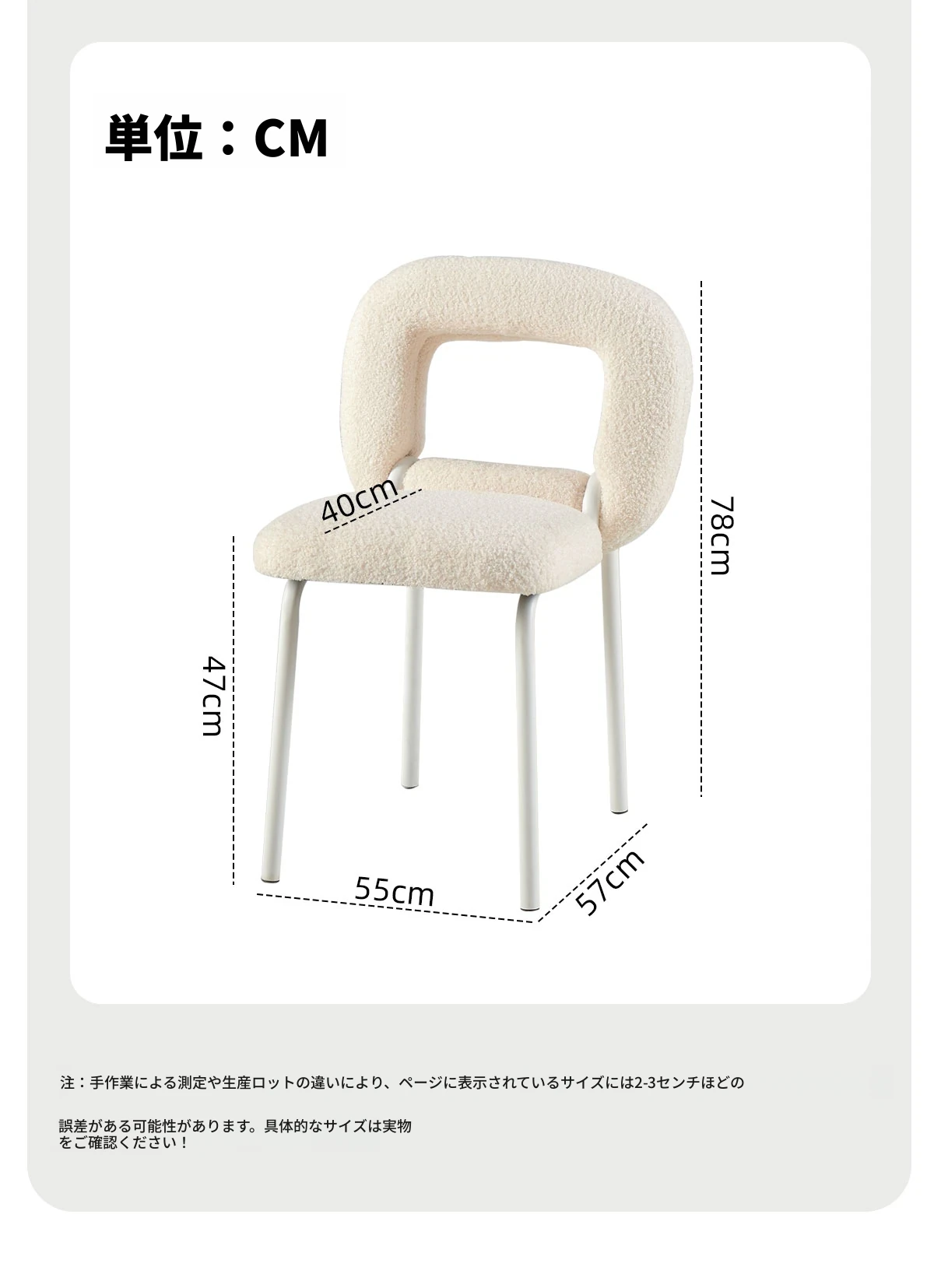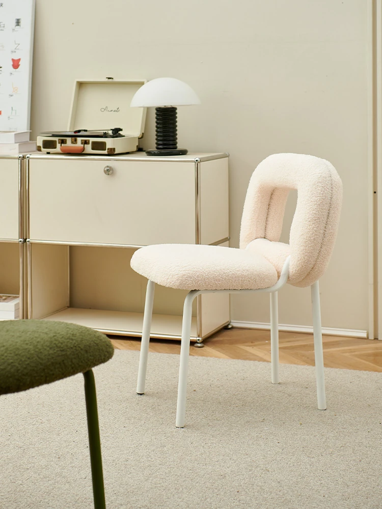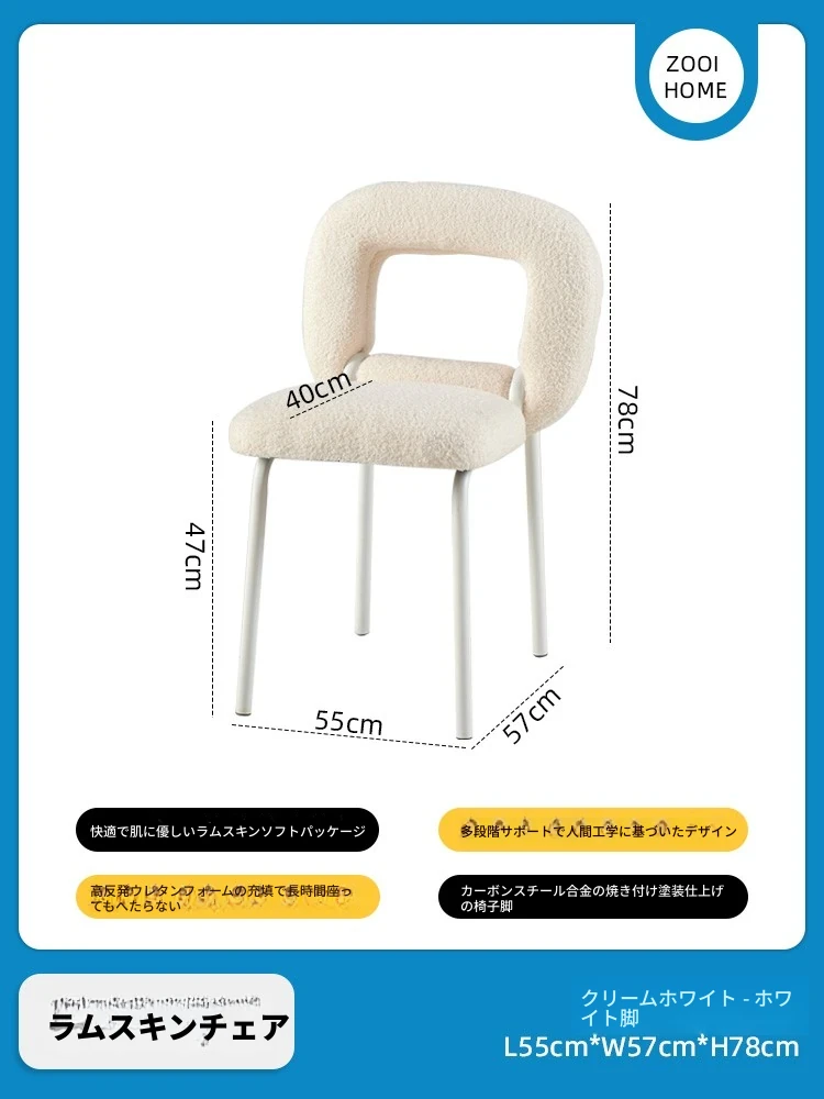 ZOOI HOMEクリーミーなラムファー化粧椅子 - おしゃれな女子必見!個性的なネイルチェアとしても大活躍。寝室やメイクスペースにぴったりのトレンドアイテム!