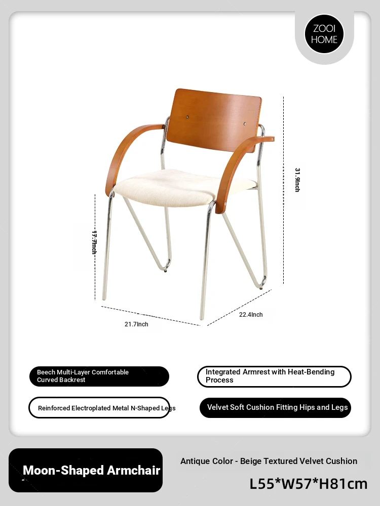 ZOOI HOME Designer Dining Chair - Bauhaus Style, Elegant and Unique for Home Use, Armrest, Solid Wood, Vintage Aesthetic for Chic Dining Spaces