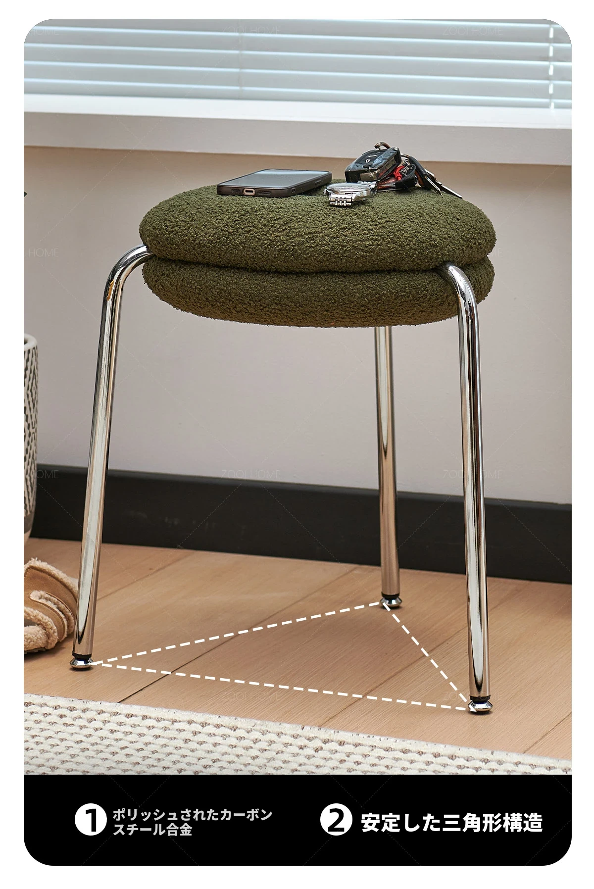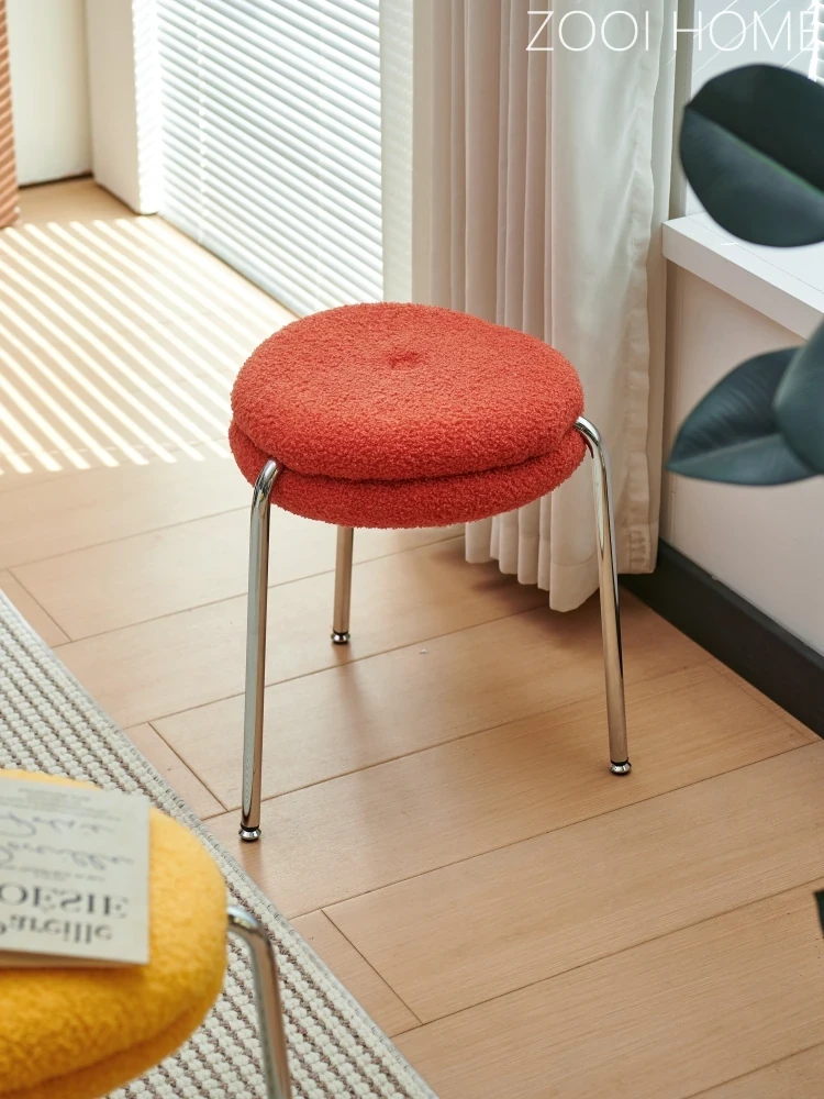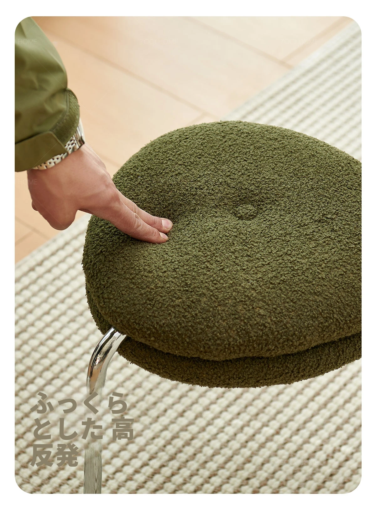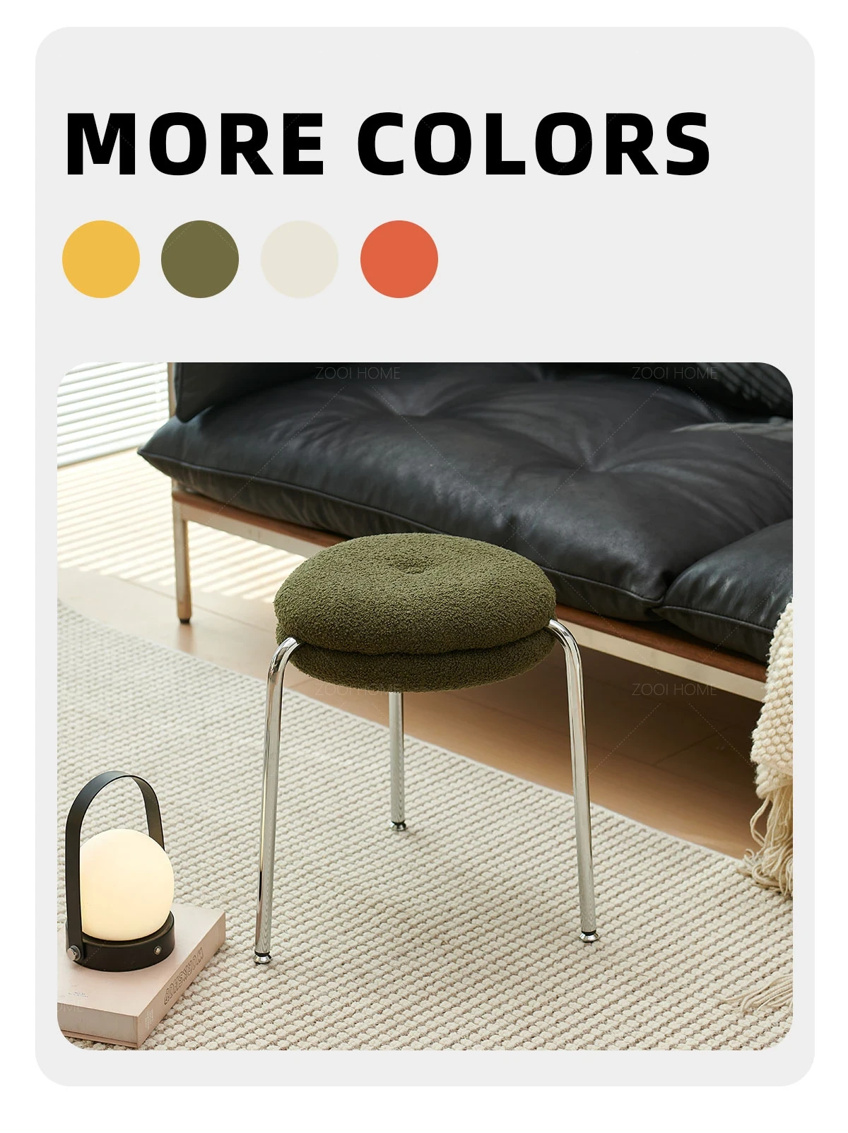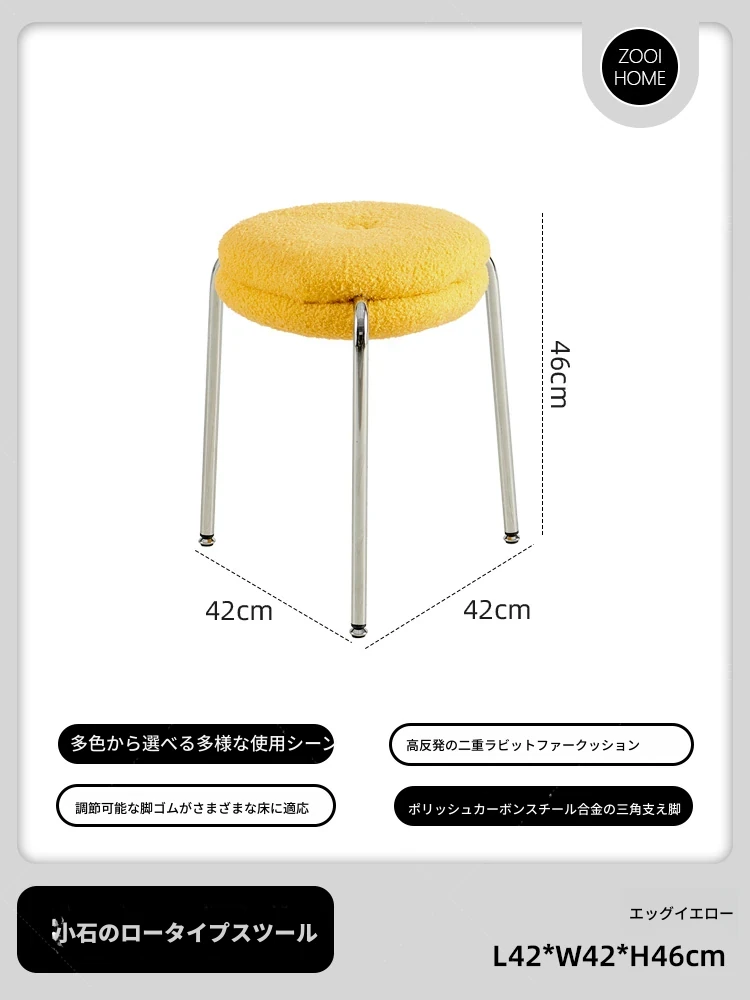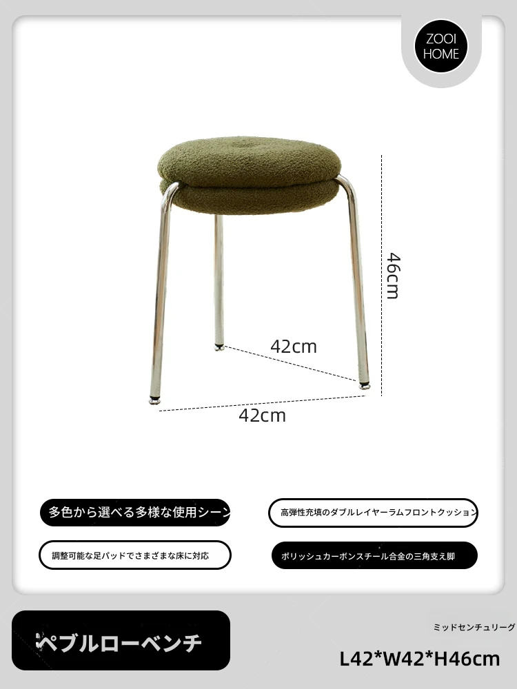 ZOOI HOMEのエレガントなオーストリッチスツール - ラグジュアリーなラムファーとクリーミーなデザインで、リビングの休息空間に最適!おしゃれなシューズチェンジ用スツールとしても大活躍!