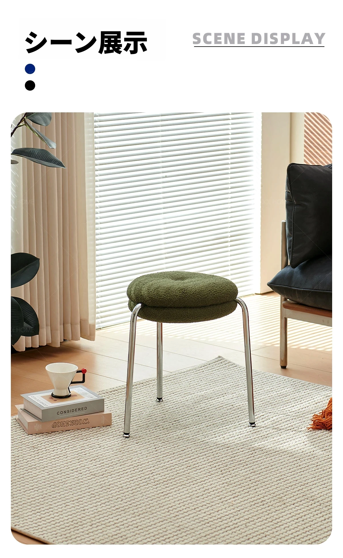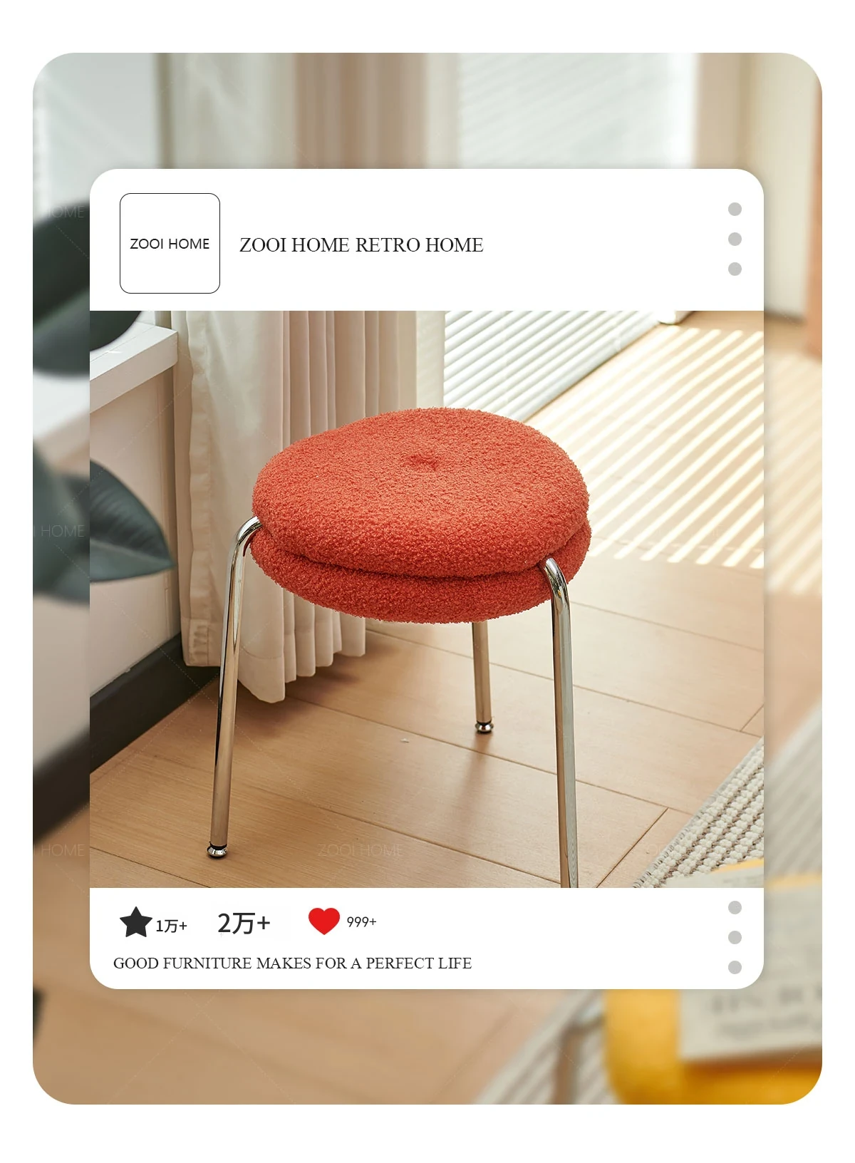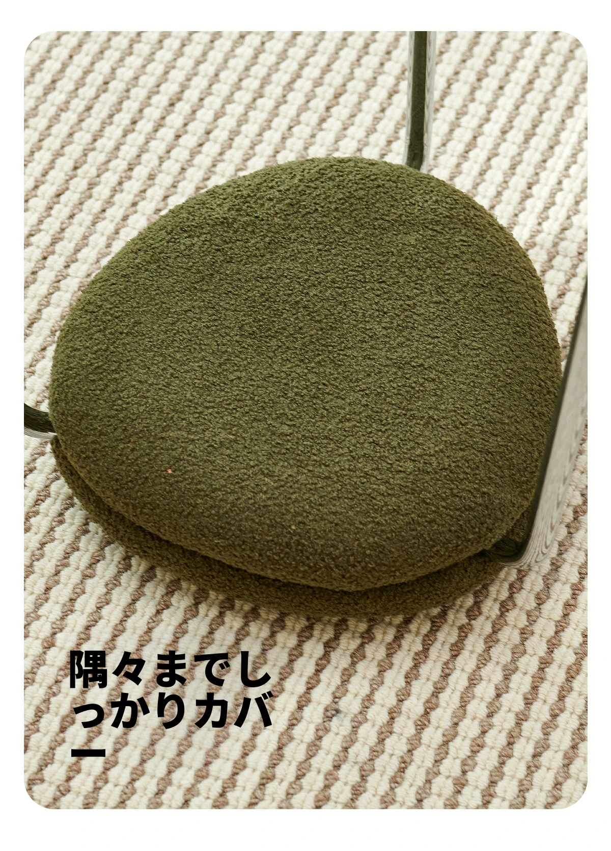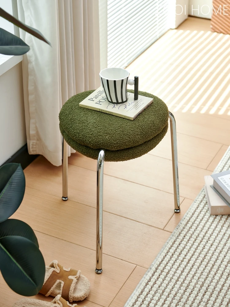 ZOOI HOMEのエレガントなオーストリッチスツール - ラグジュアリーなラムファーとクリーミーなデザインで、リビングの休息空間に最適!おしゃれなシューズチェンジ用スツールとしても大活躍!