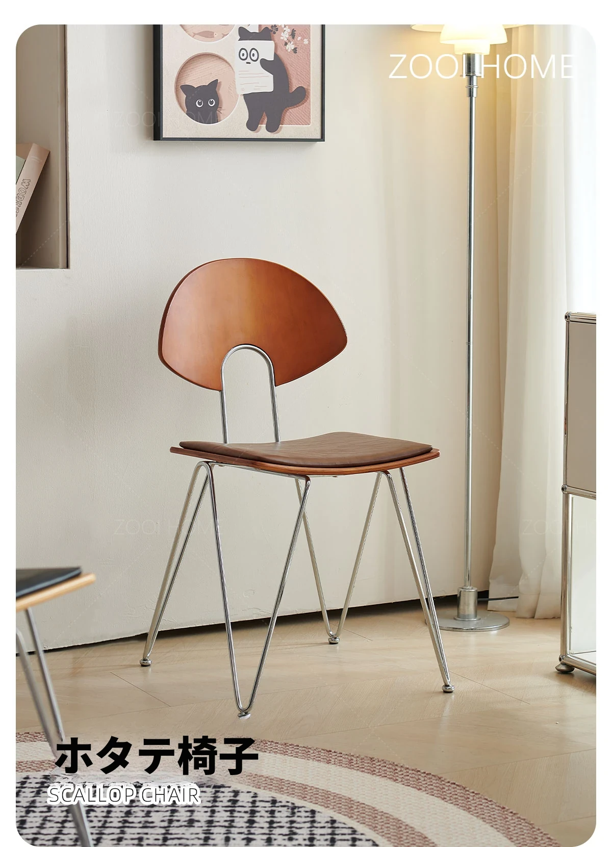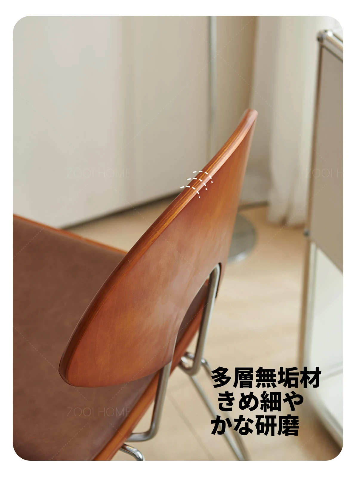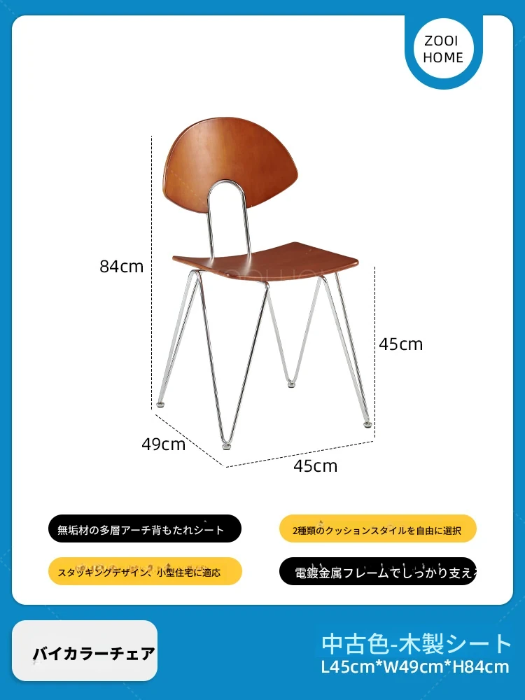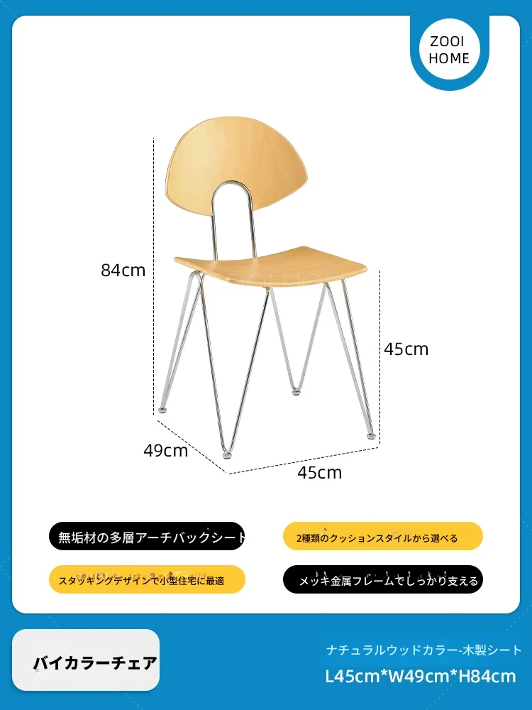 ZOOI HOME北欧スタイルの無垢材チェア - シンプルでおしゃれな背もたれ付き、人気のカフェにもぴったり!スタッキング可能で、省スペースを実現。リラックスした食事のひとときをお楽しみください。
