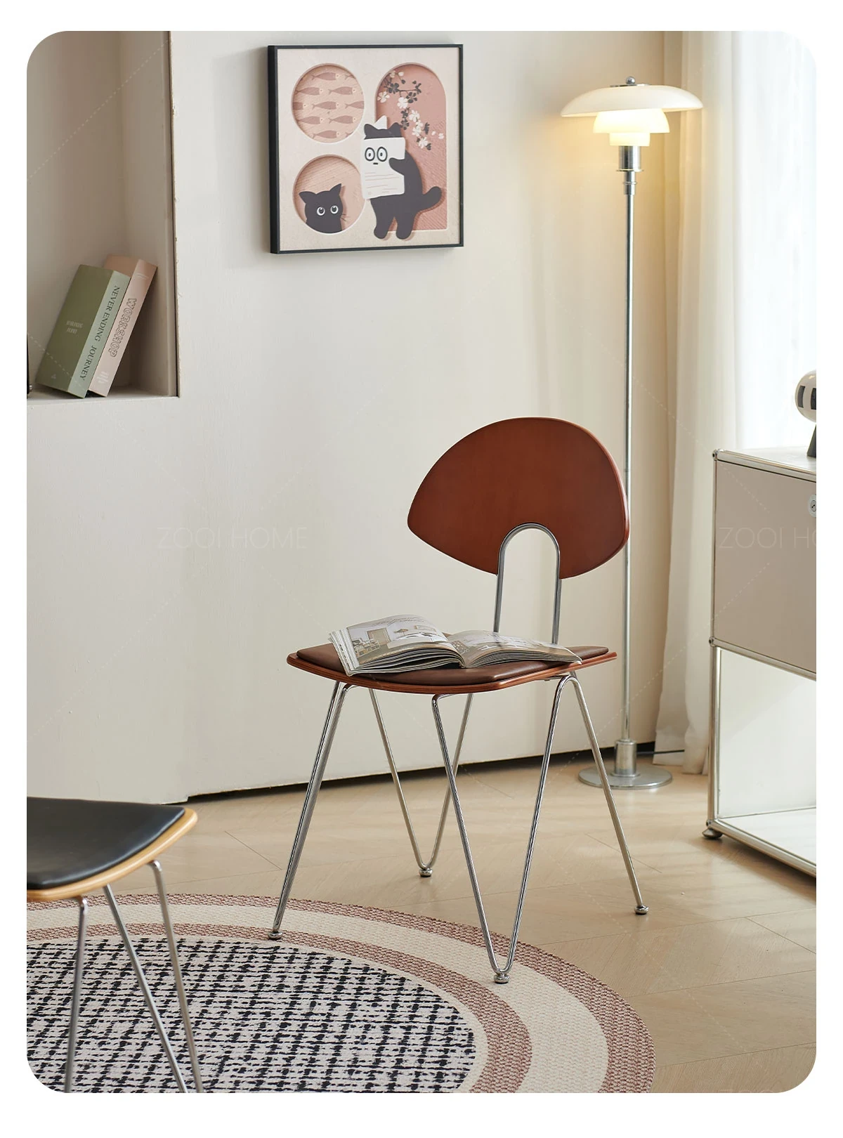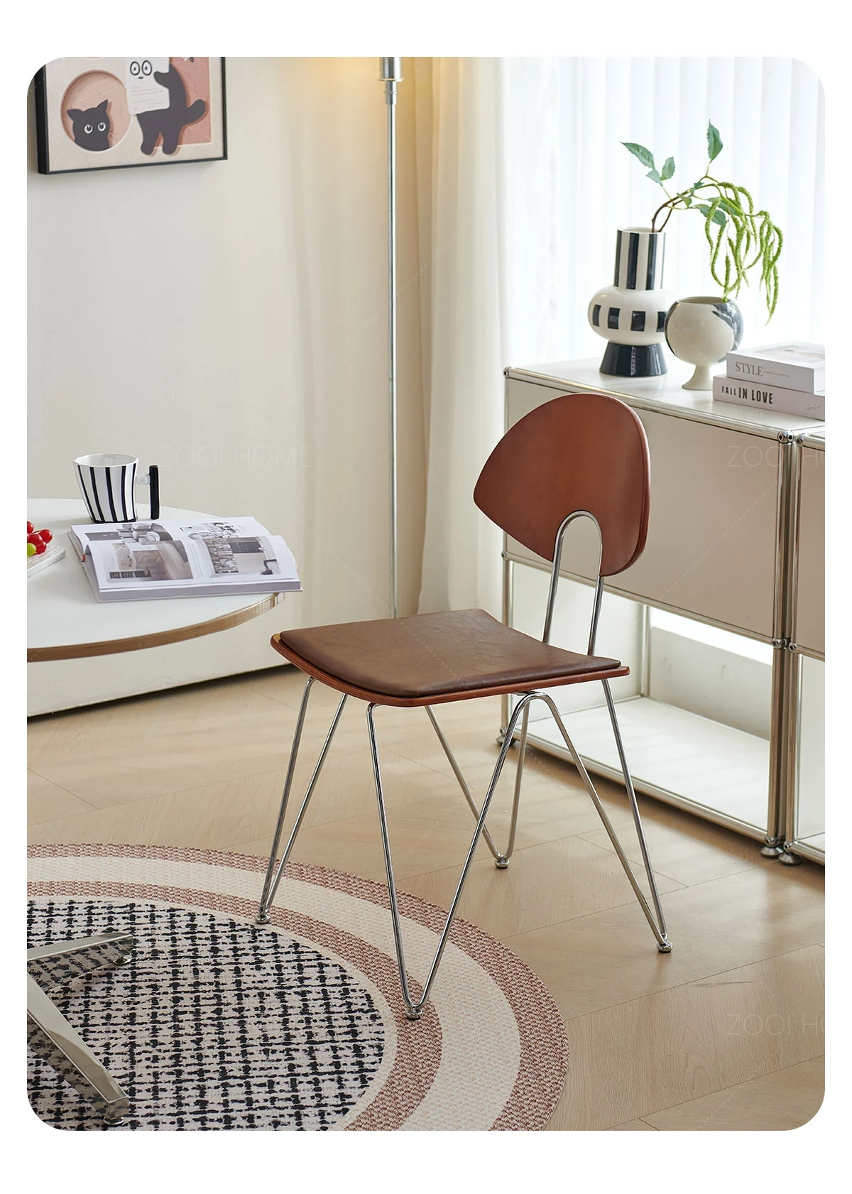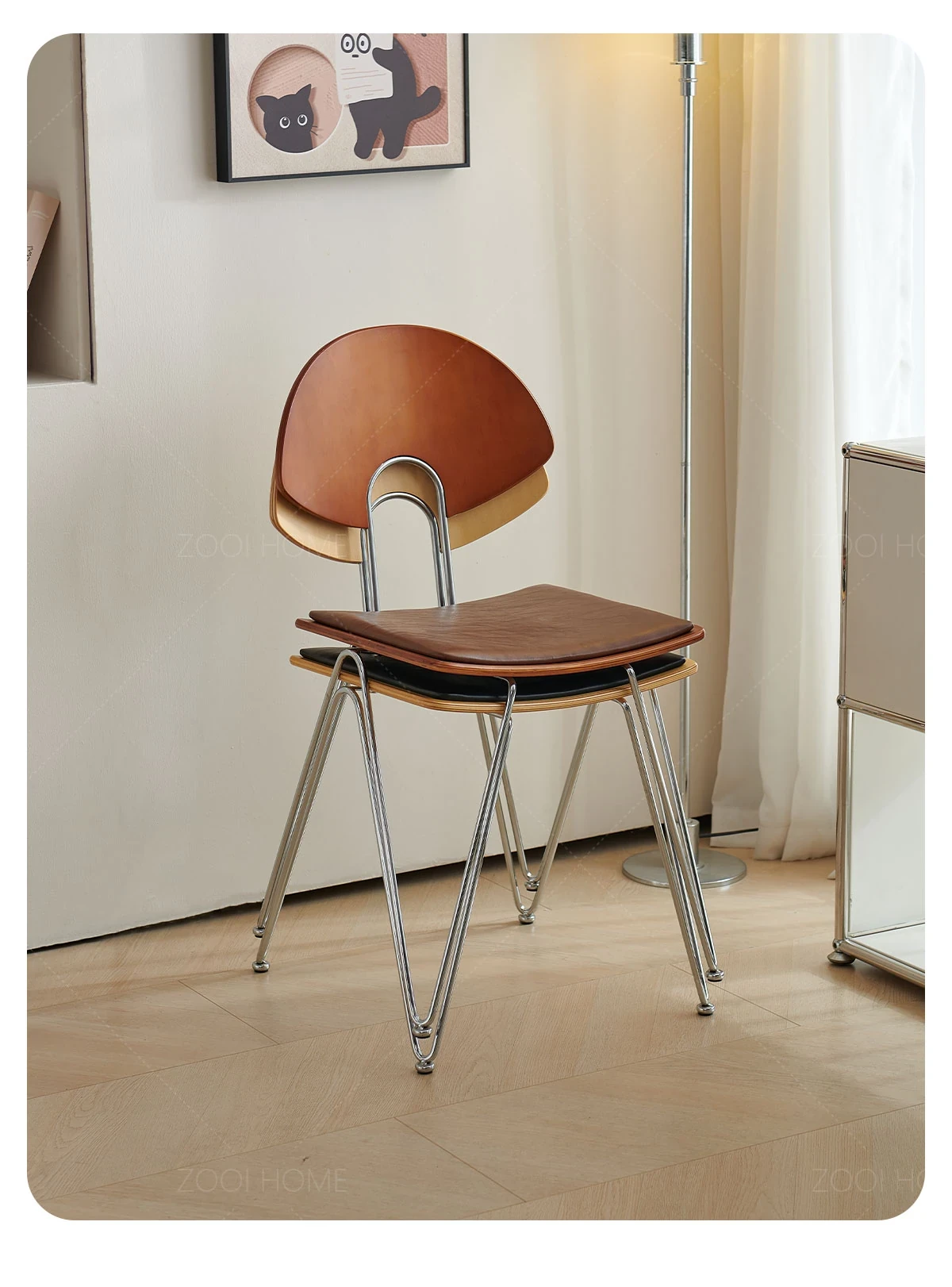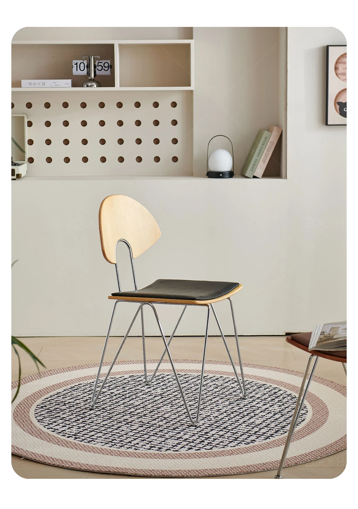 ZOOI HOME北欧スタイルの無垢材チェア - シンプルでおしゃれな背もたれ付き、人気のカフェにもぴったり!スタッキング可能で、省スペースを実現。リラックスした食事のひとときをお楽しみください。