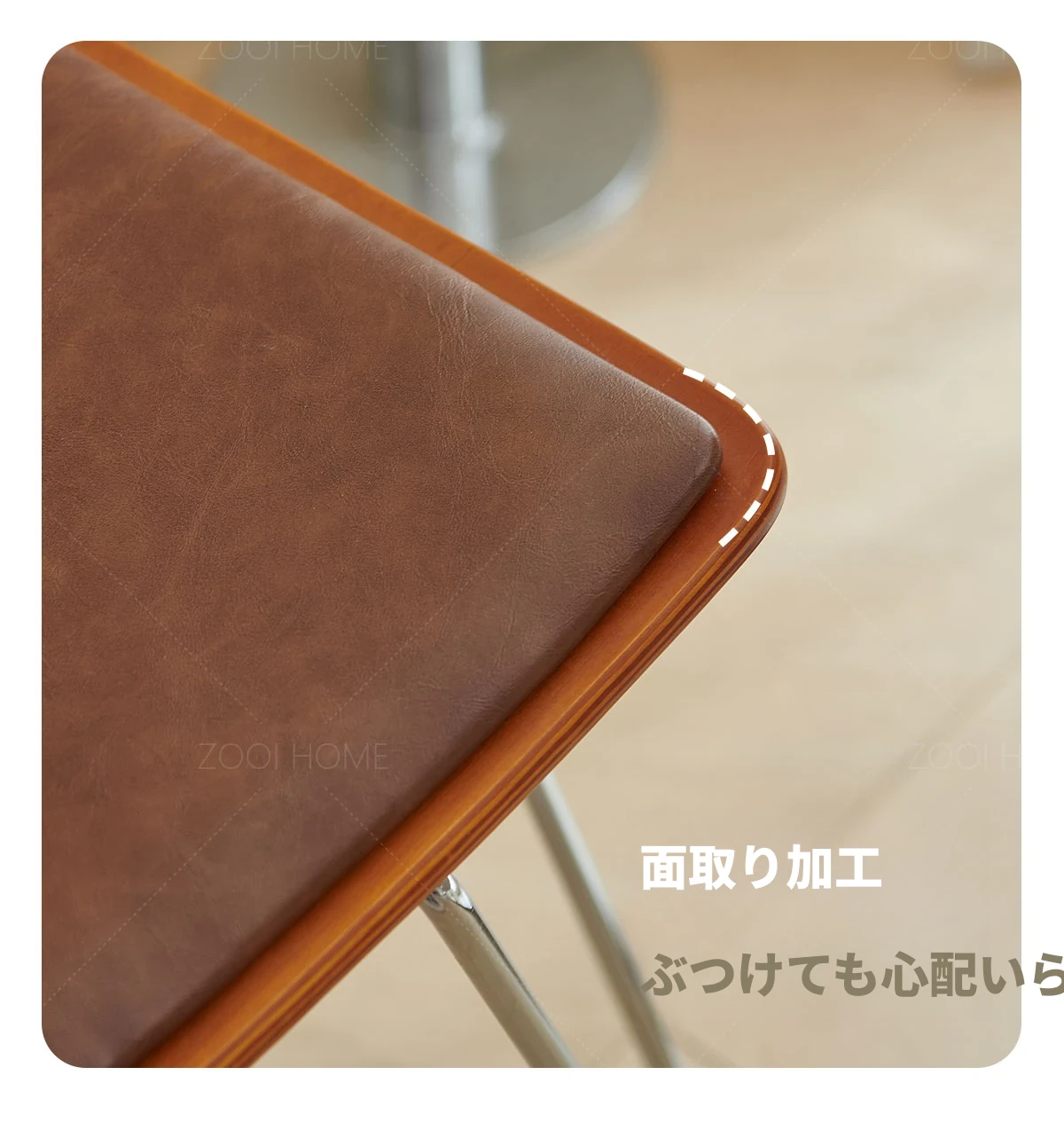 ナチュラルウッドカラー/ブラックオイルレザークッション
