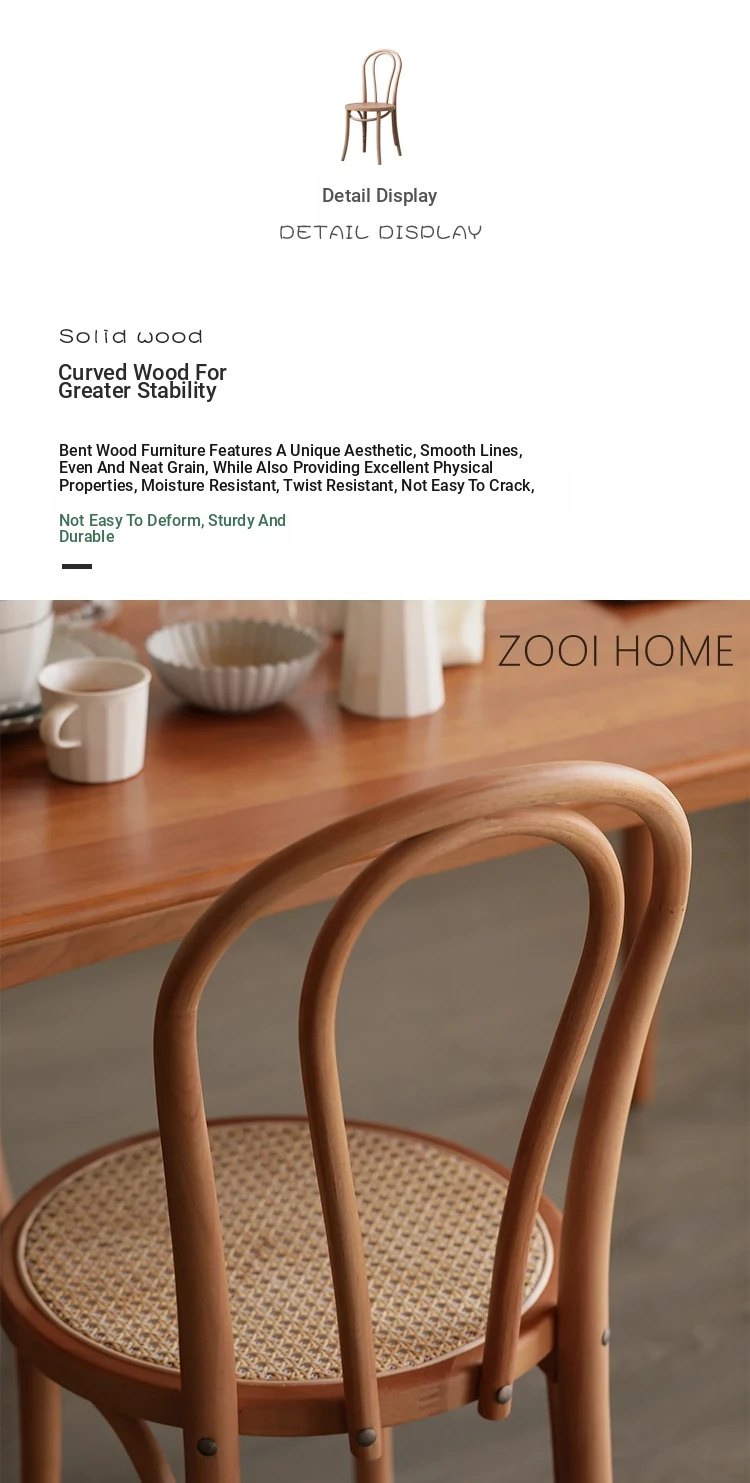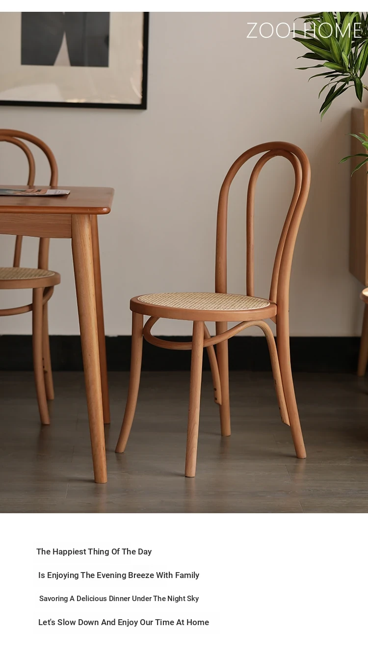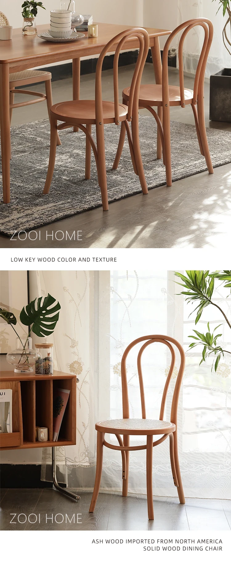 ZOOI HOME北欧スタイルの無垢材ダイニングチェア|インスタ映えする中古ラタンチェア|トン・ソネト18号椅子|おしゃれで快適な食卓を演出!