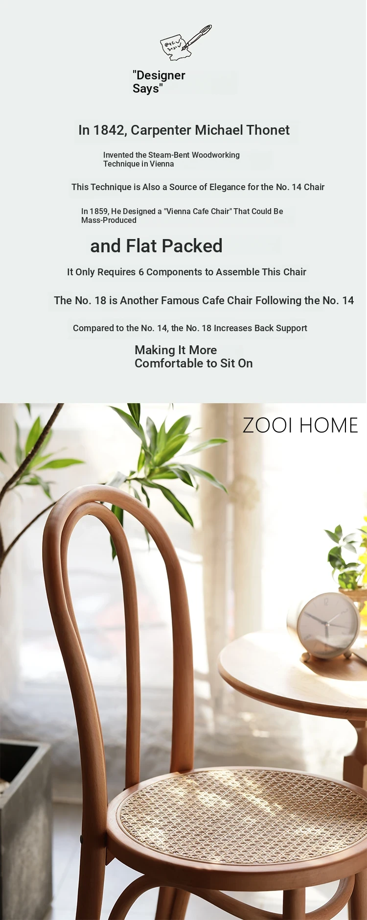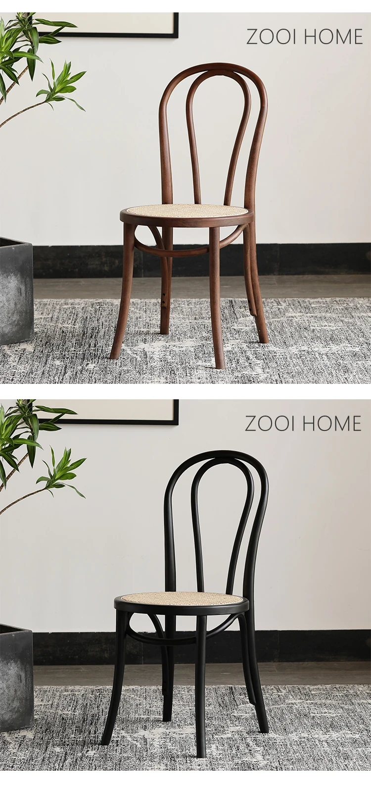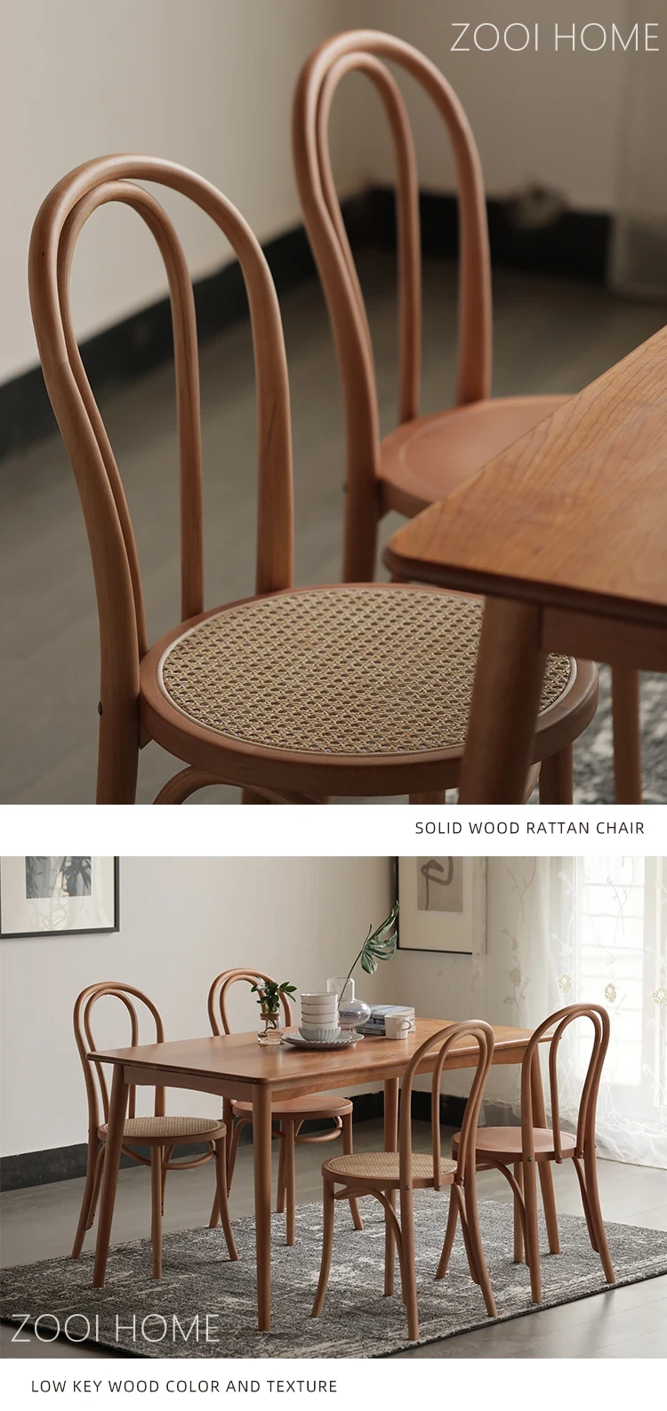 ZOOI HOME北欧スタイルの無垢材ダイニングチェア|インスタ映えする中古ラタンチェア|トン・ソネト18号椅子|おしゃれで快適な食卓を演出!
