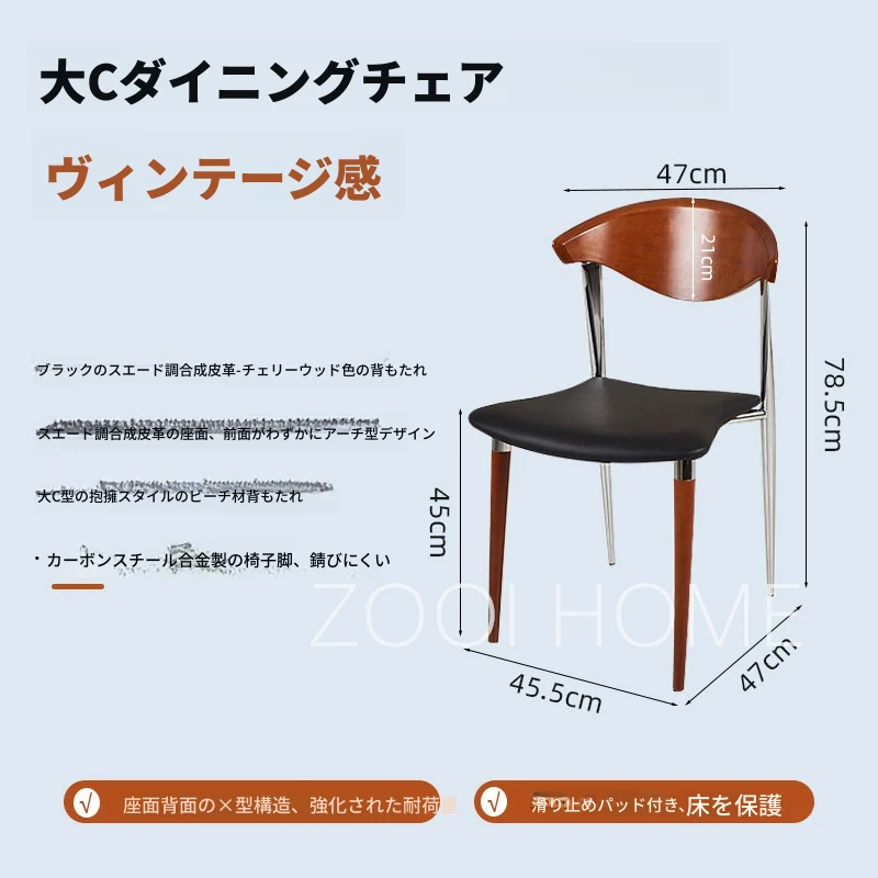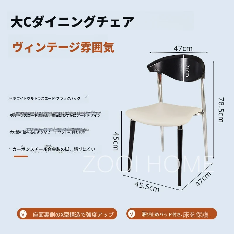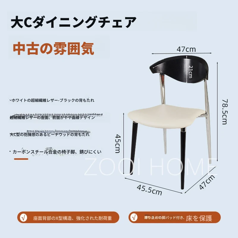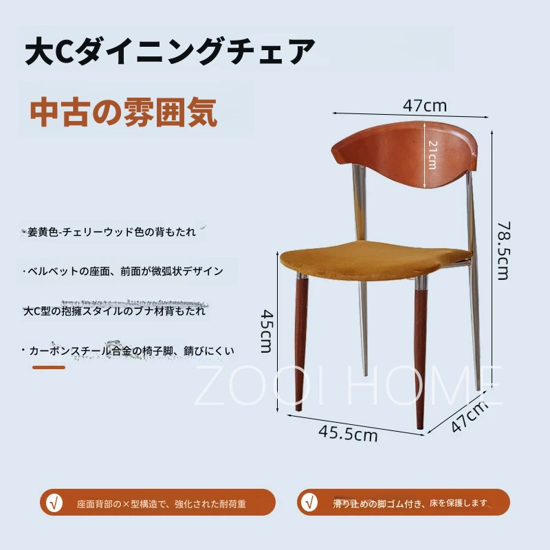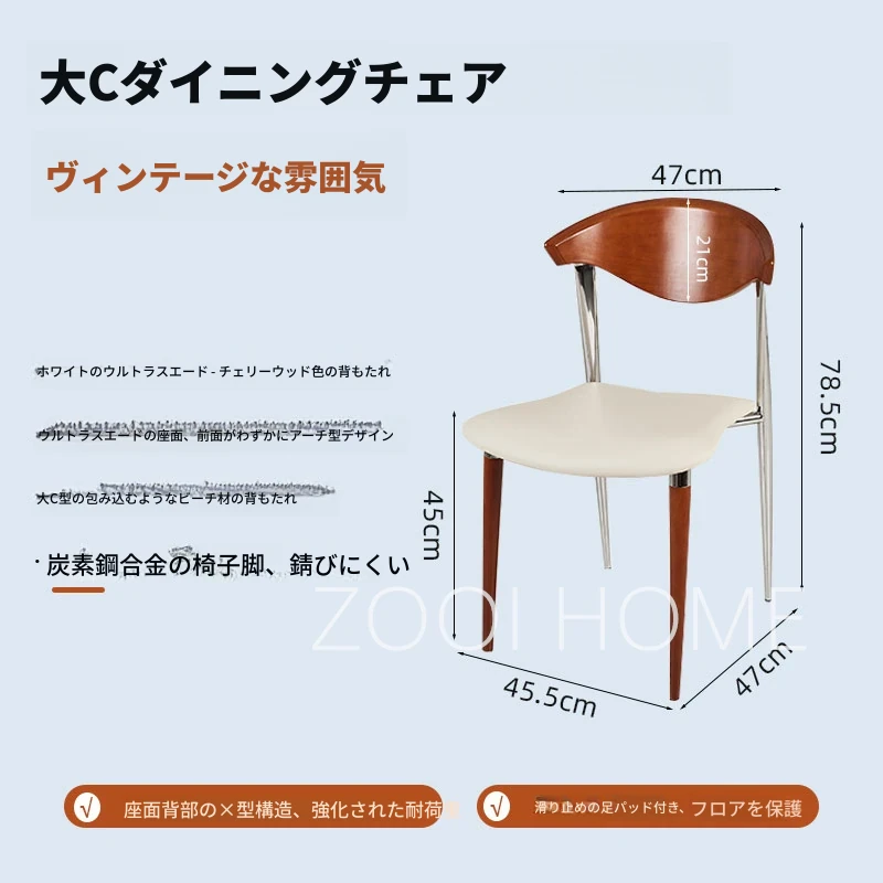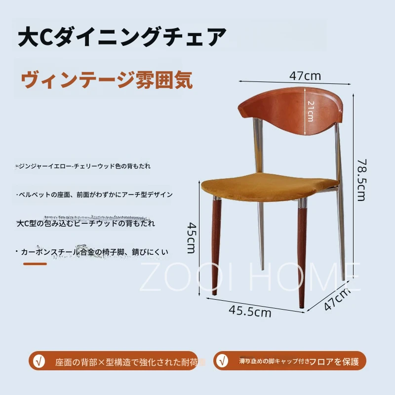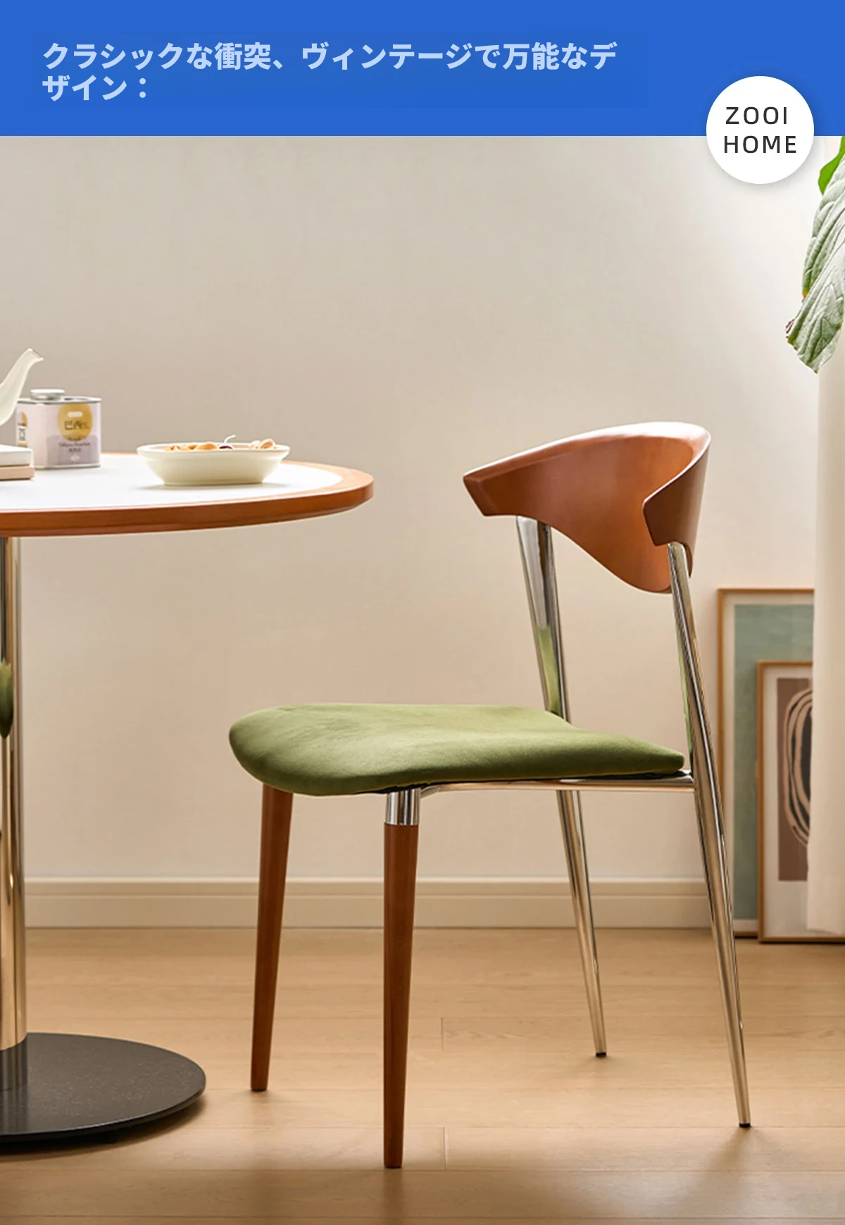 ZOOI HOME ヴィンテージ風ダイニングチェア - 北欧スタイル、デザイナーによる洗練された無垢材背もたれ。軽やかなラグジュアリー感を演出する、個性的でおしゃれな中古チェア!