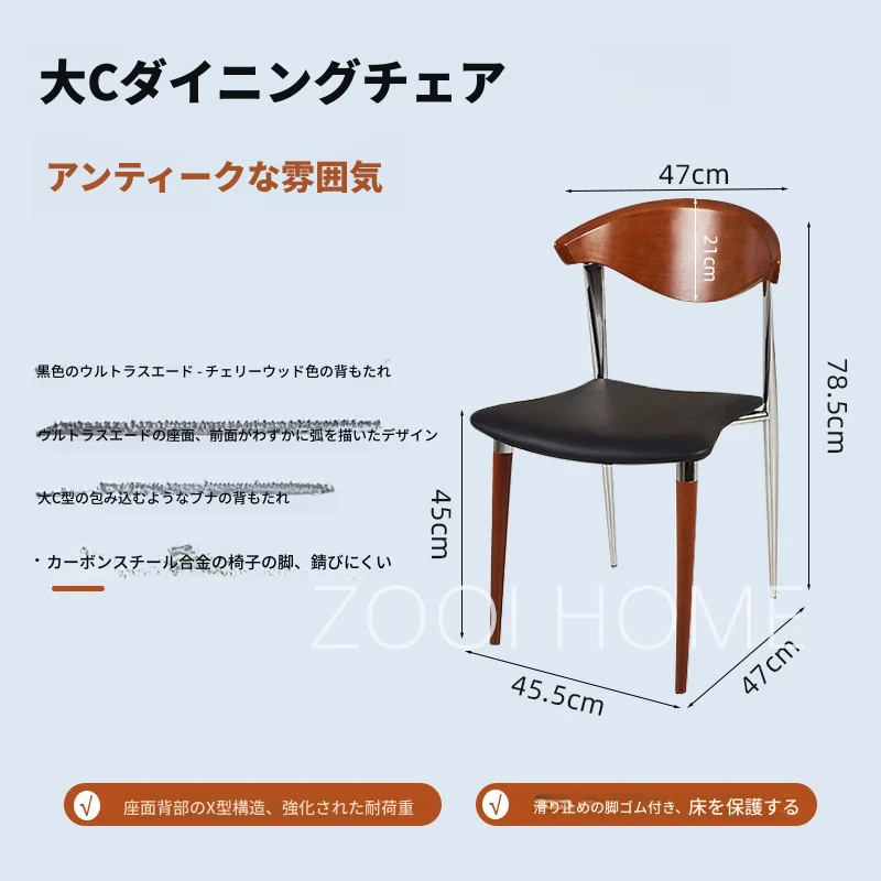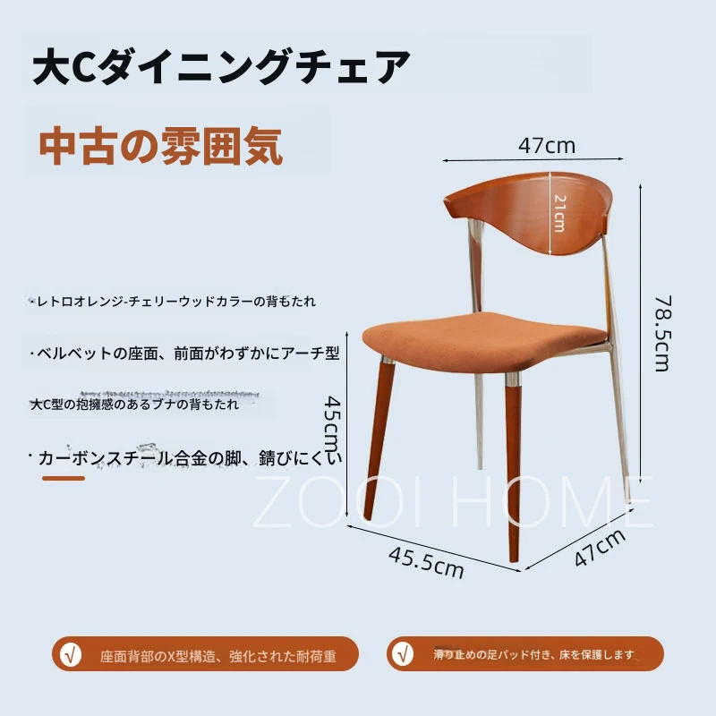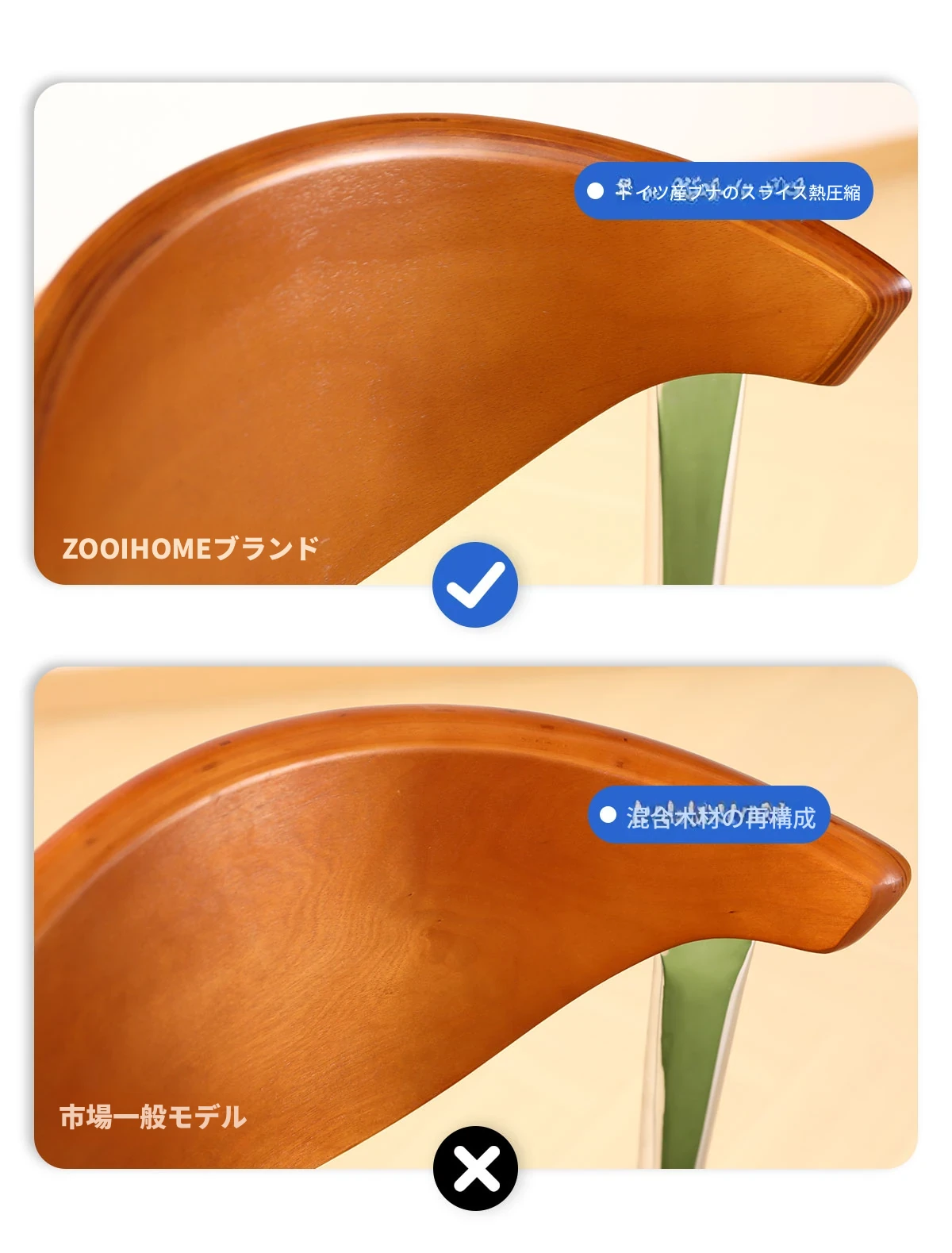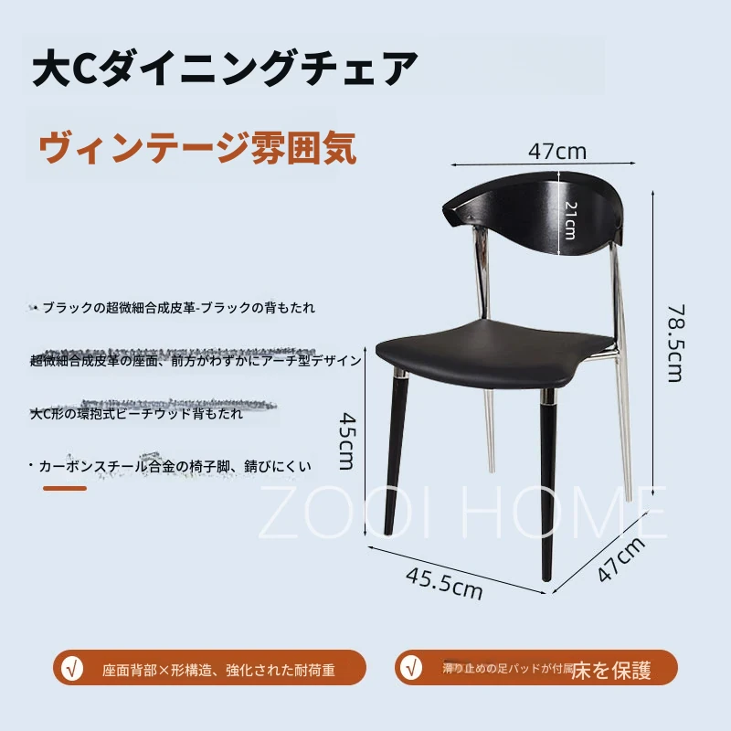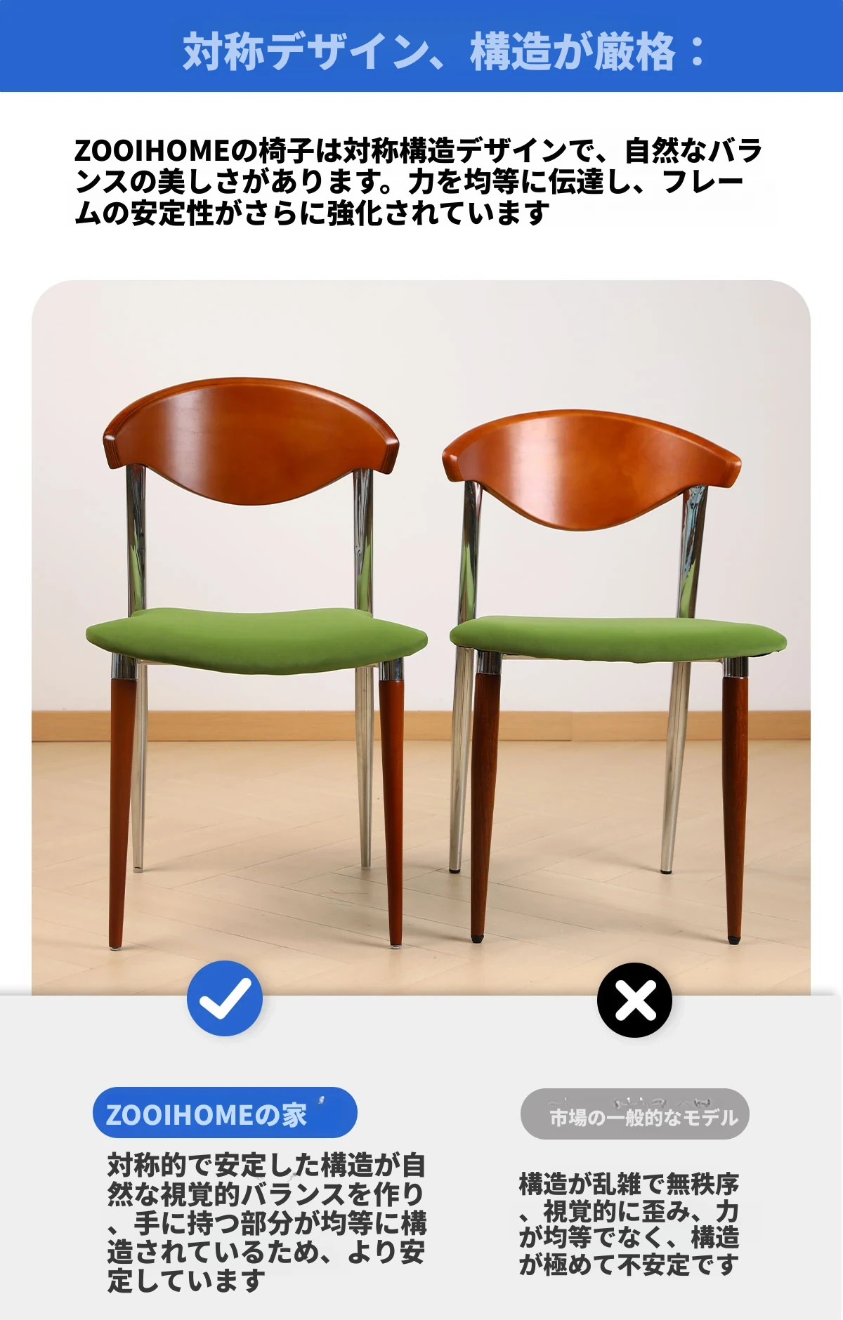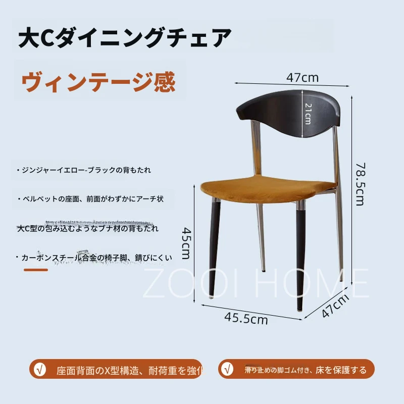 ZOOI HOME ヴィンテージ風ダイニングチェア - 北欧スタイル、デザイナーによる洗練された無垢材背もたれ。軽やかなラグジュアリー感を演出する、個性的でおしゃれな中古チェア!
