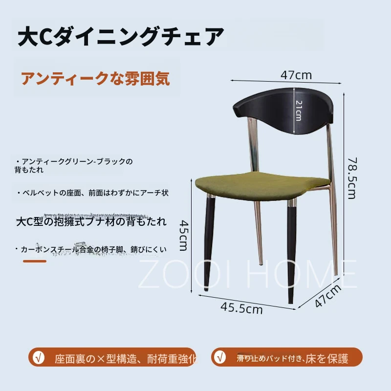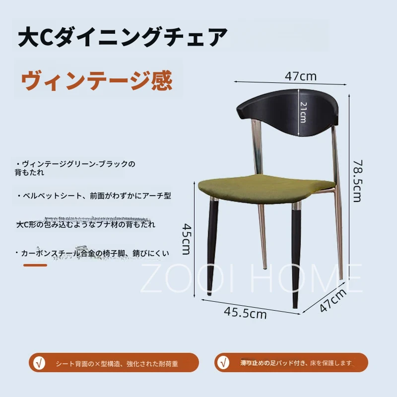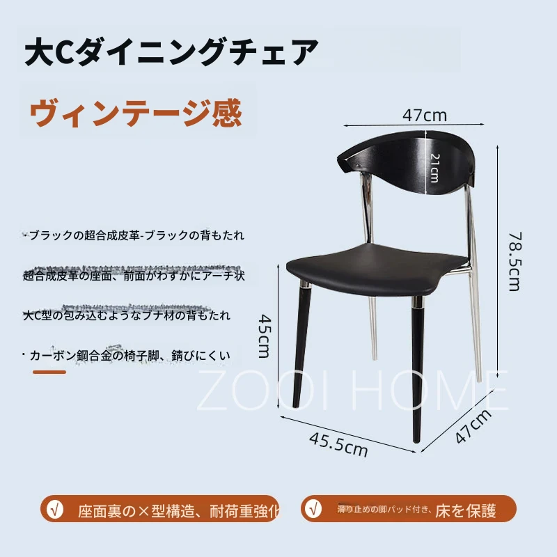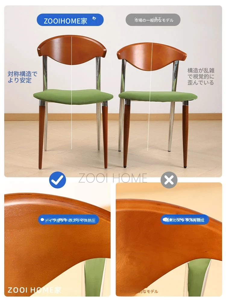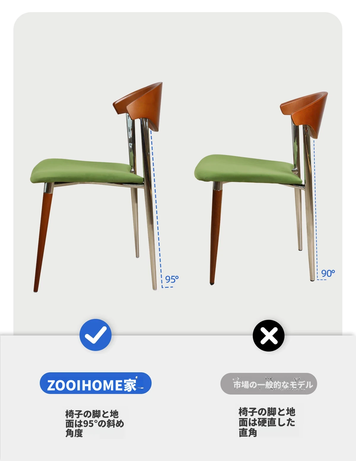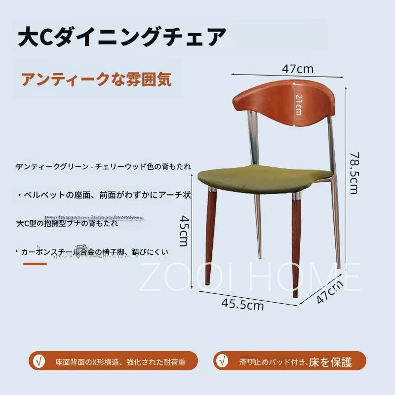 ZOOI HOME ヴィンテージ風ダイニングチェア - 北欧スタイル、デザイナーによる洗練された無垢材背もたれ。軽やかなラグジュアリー感を演出する、個性的でおしゃれな中古チェア!