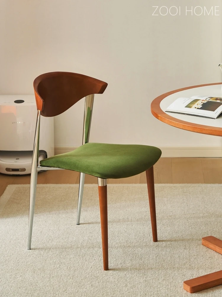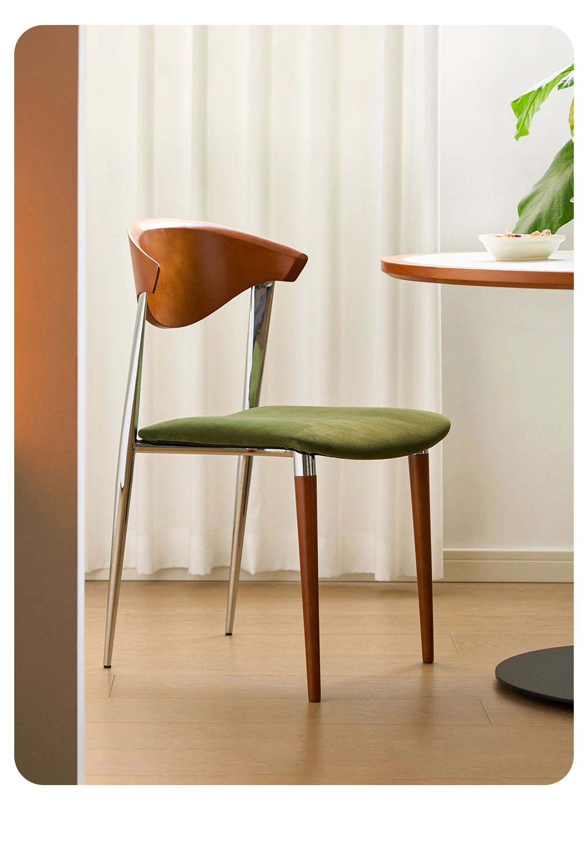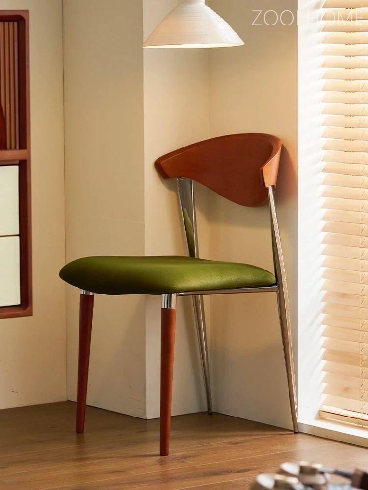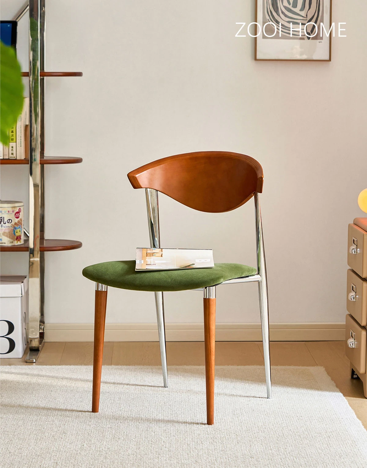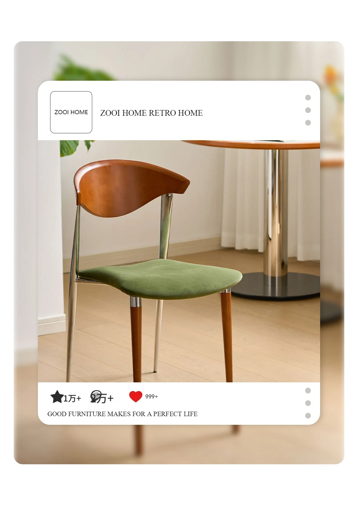 ZOOI HOME ヴィンテージ風ダイニングチェア - 北欧スタイル、デザイナーによる洗練された無垢材背もたれ。軽やかなラグジュアリー感を演出する、個性的でおしゃれな中古チェア!
