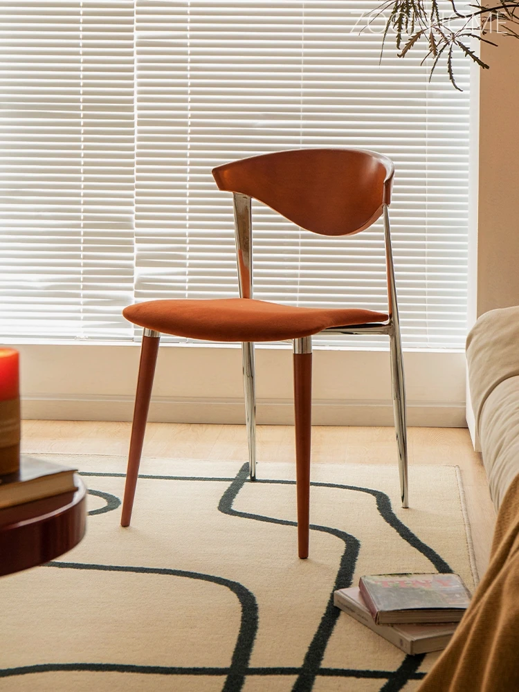 【アップグレード版ブナ材前脚】ヴィンテージオレンジクッション-ブラック背もたれ