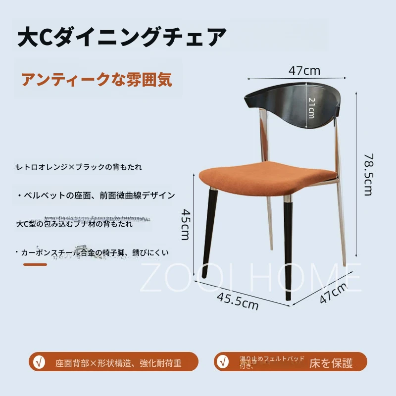 【コストパフォーマンス金属前脚】ヴィンテージオレンジクッション-ブラック背もたれ