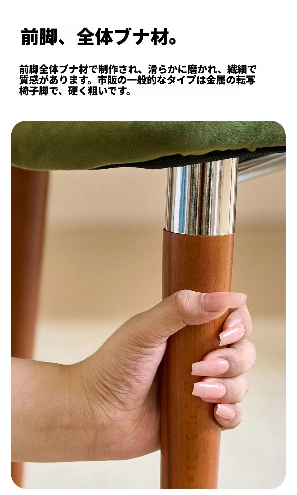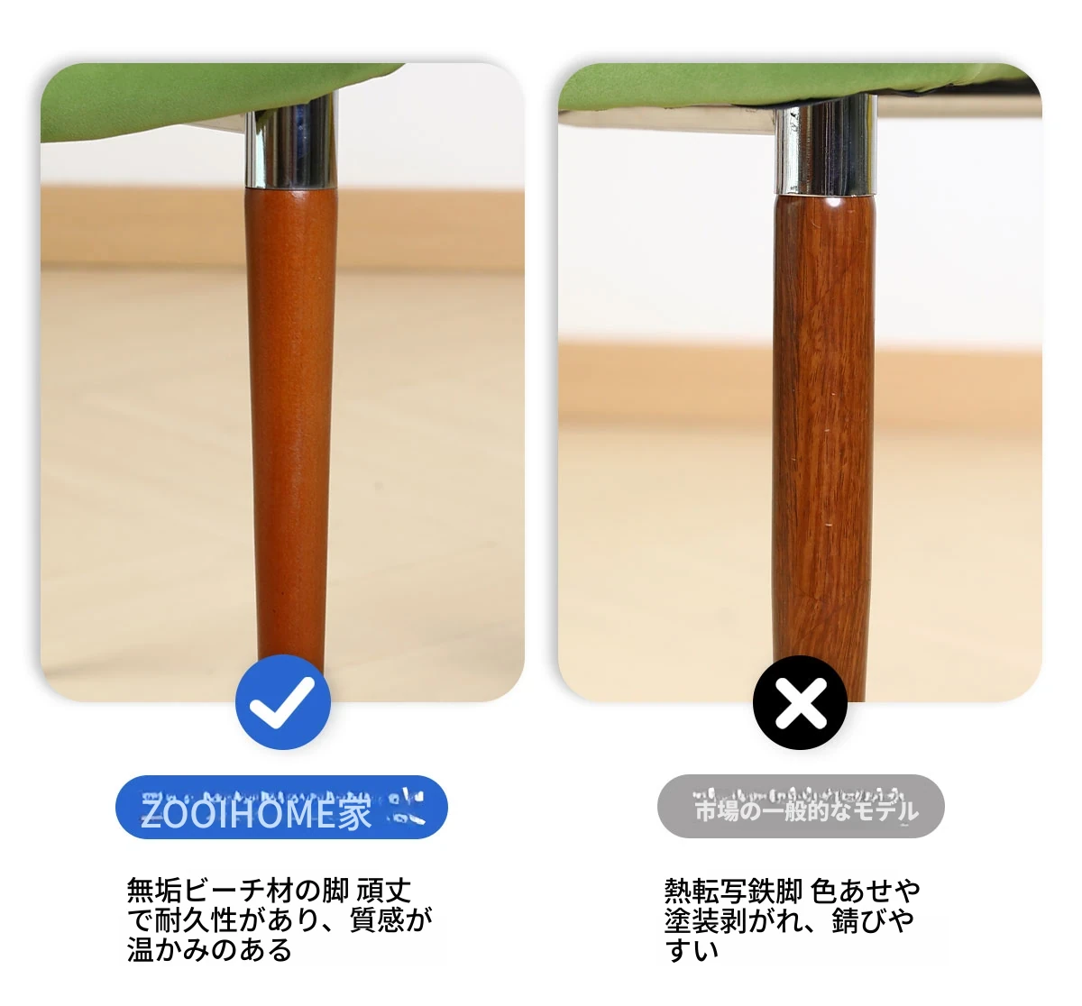 【アップグレード版ブナ材前脚】ヴィンテージグリーンクッション-ブラック背もたれ