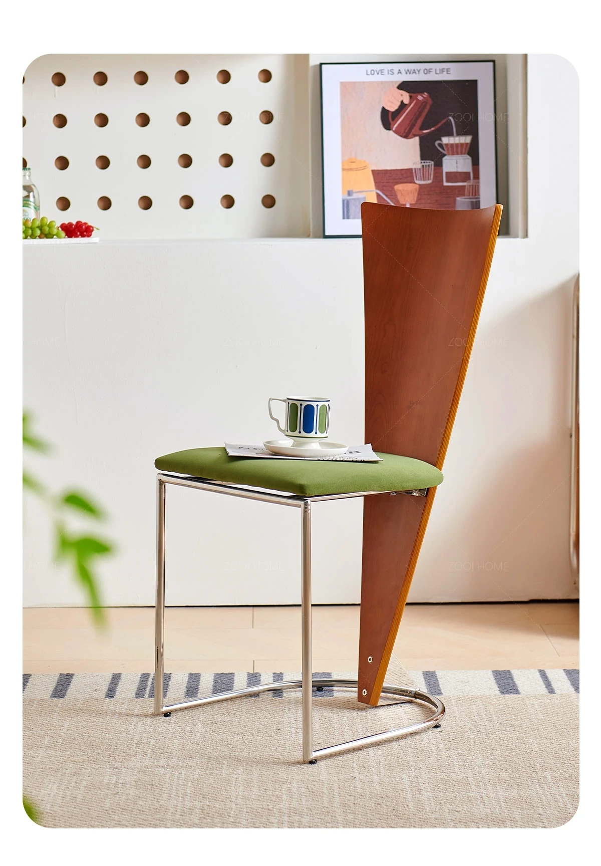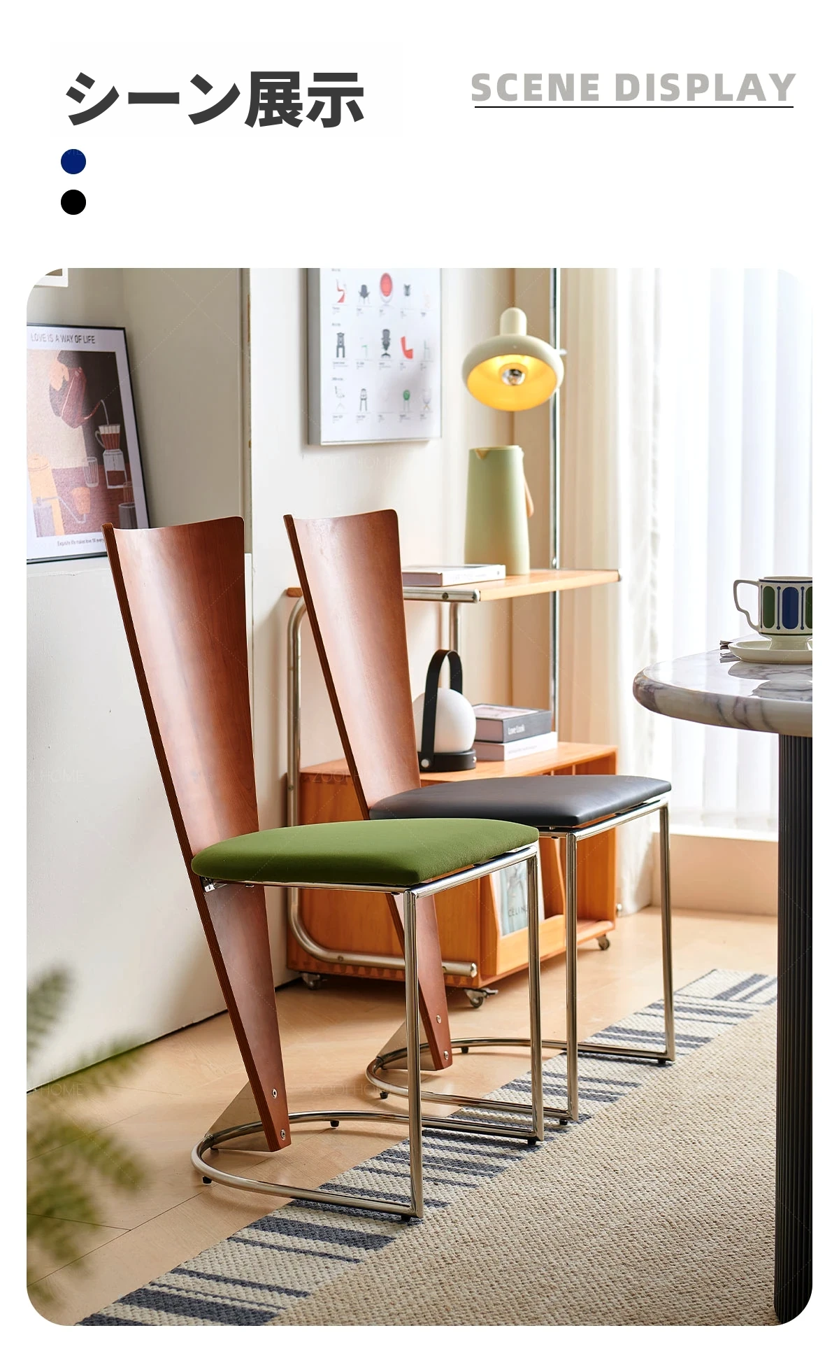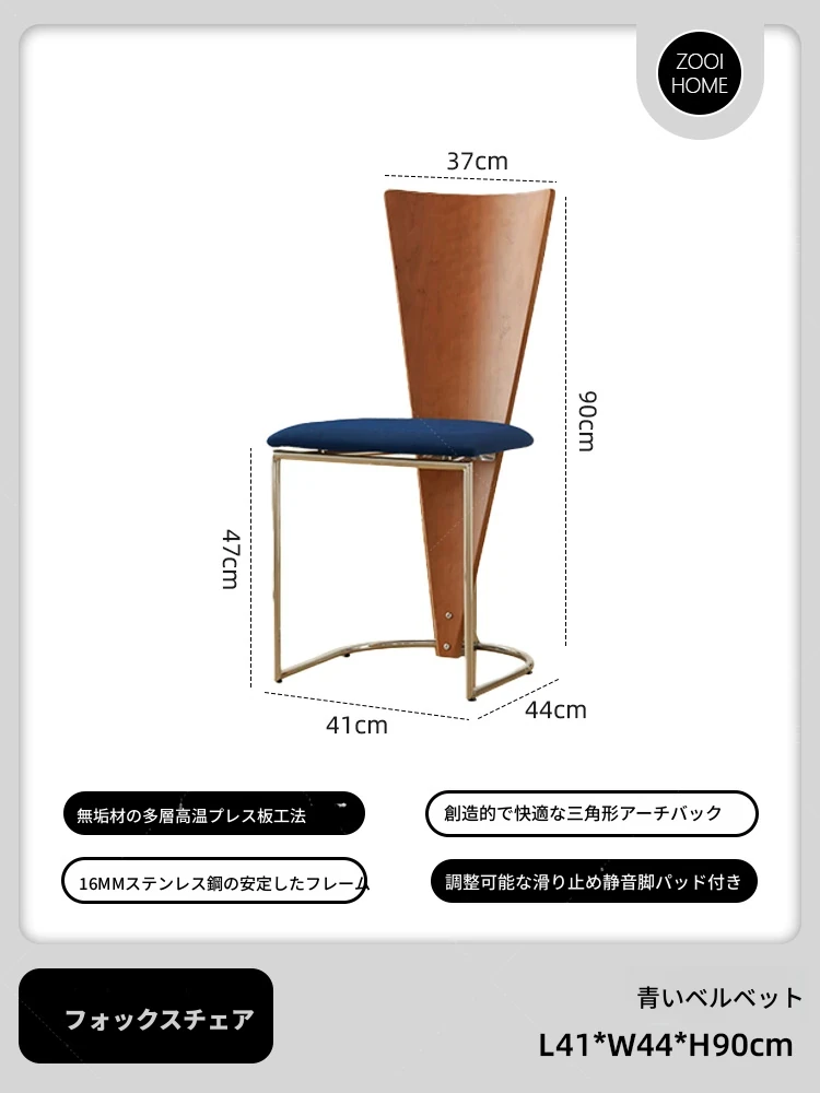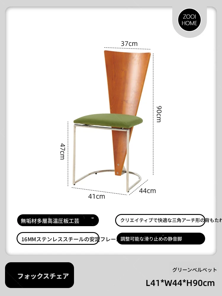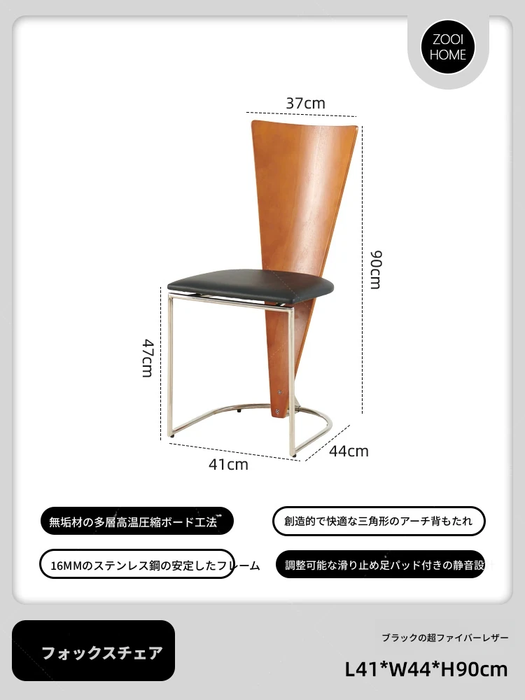 ZOOI HOMEヴィンテージ風デザインの無垢材ダイニングチェア - 家庭用クリエイティブステンレススチール製、スタイリッシュな食卓椅子でおしゃれな空間を演出!