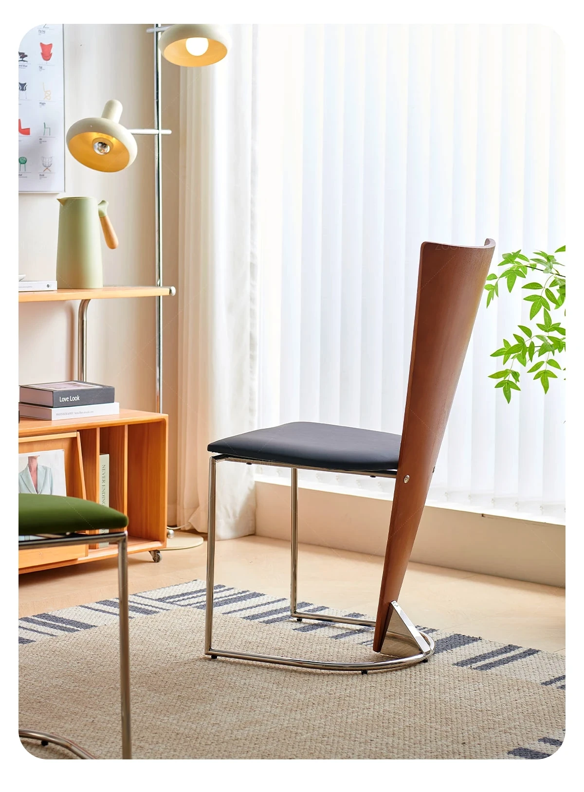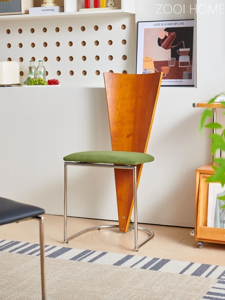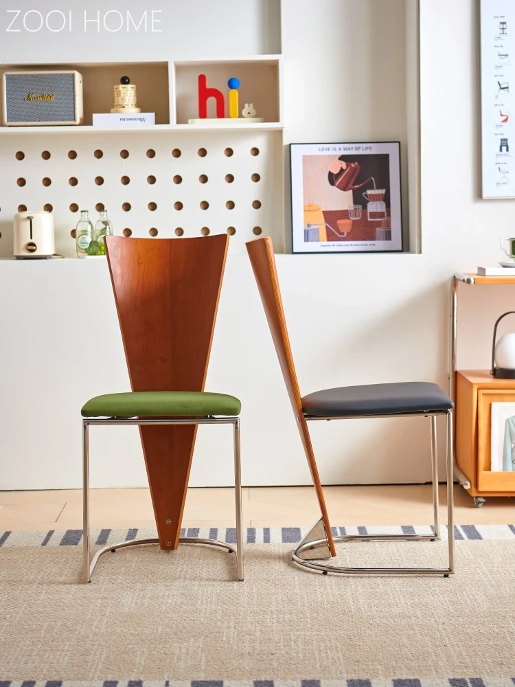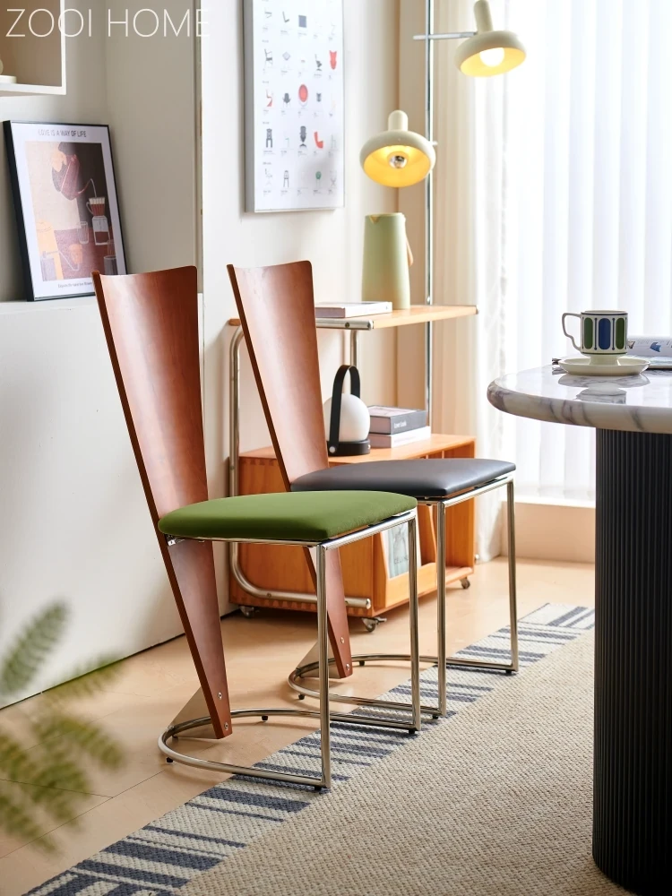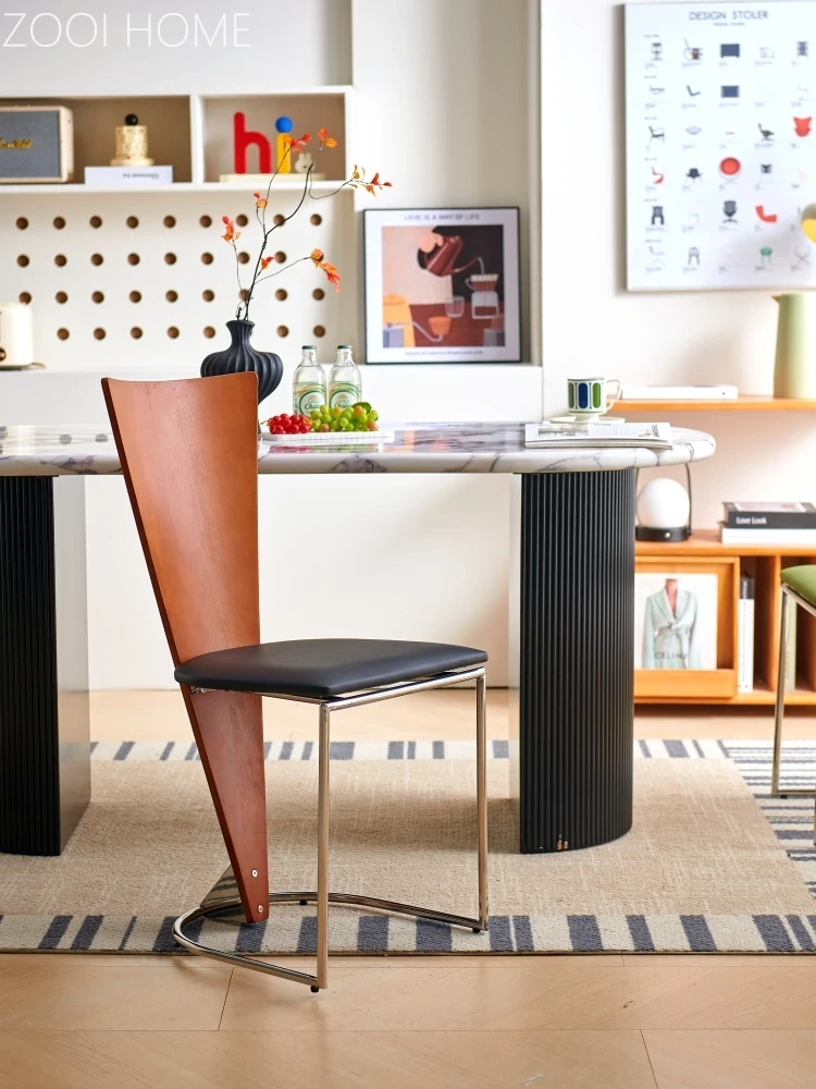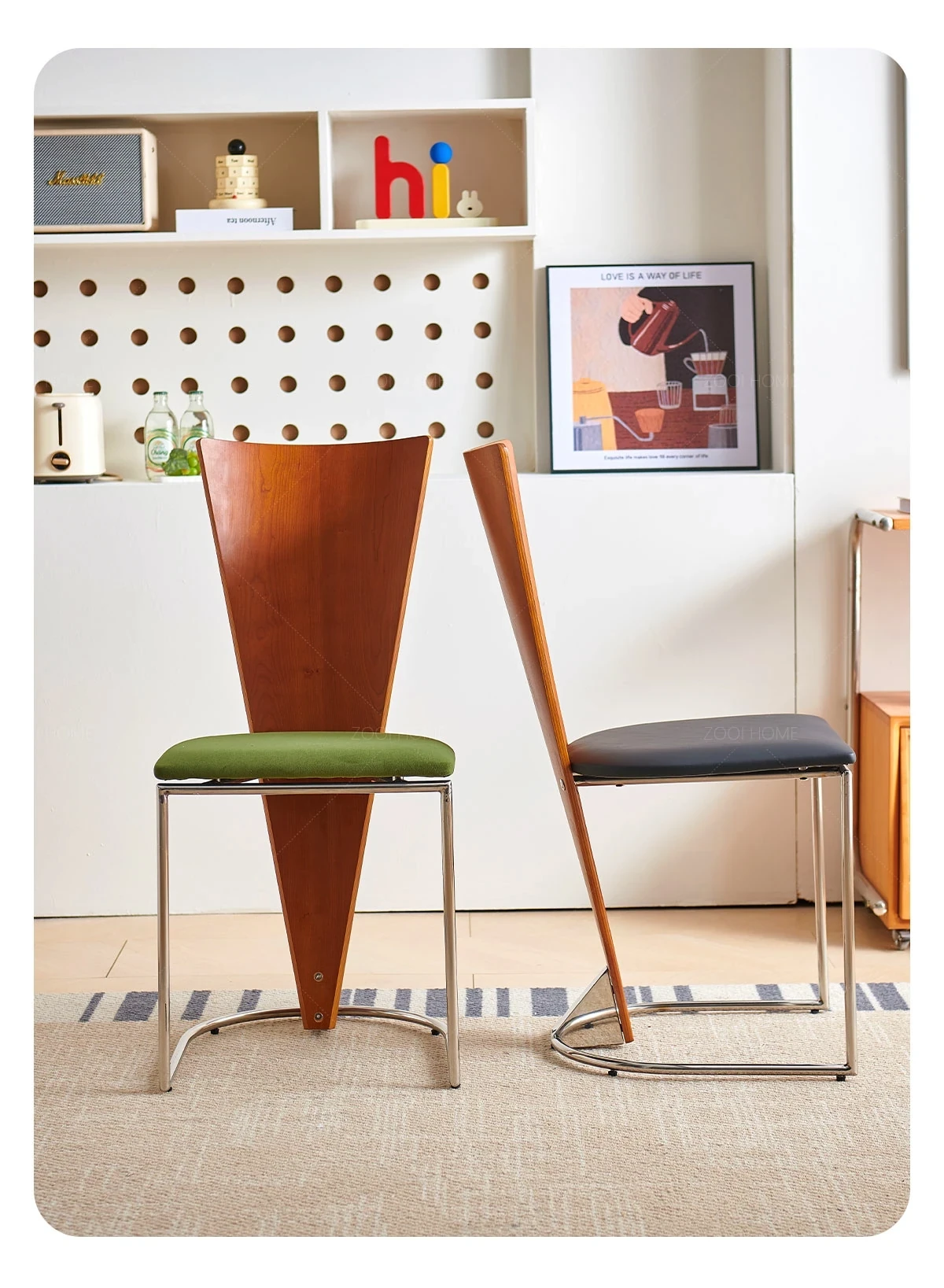 ZOOI HOMEヴィンテージ風デザインの無垢材ダイニングチェア - 家庭用クリエイティブステンレススチール製、スタイリッシュな食卓椅子でおしゃれな空間を演出!