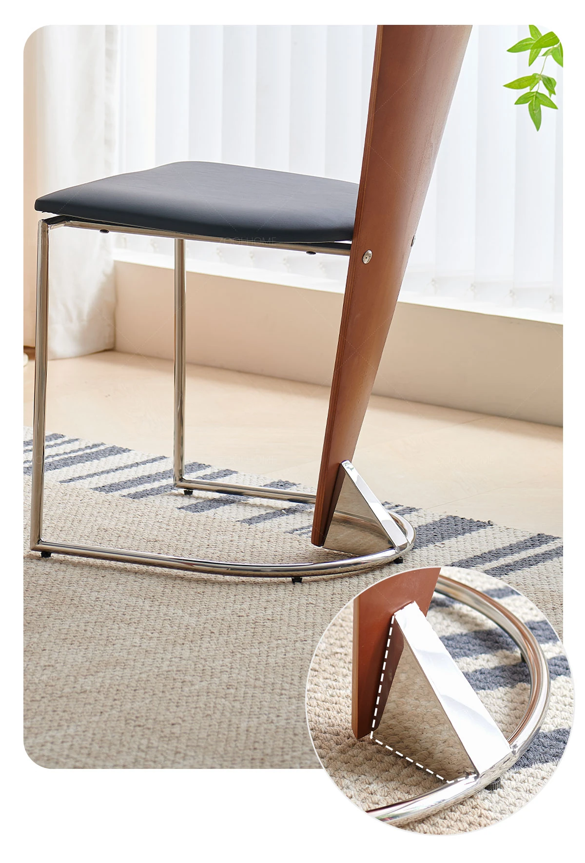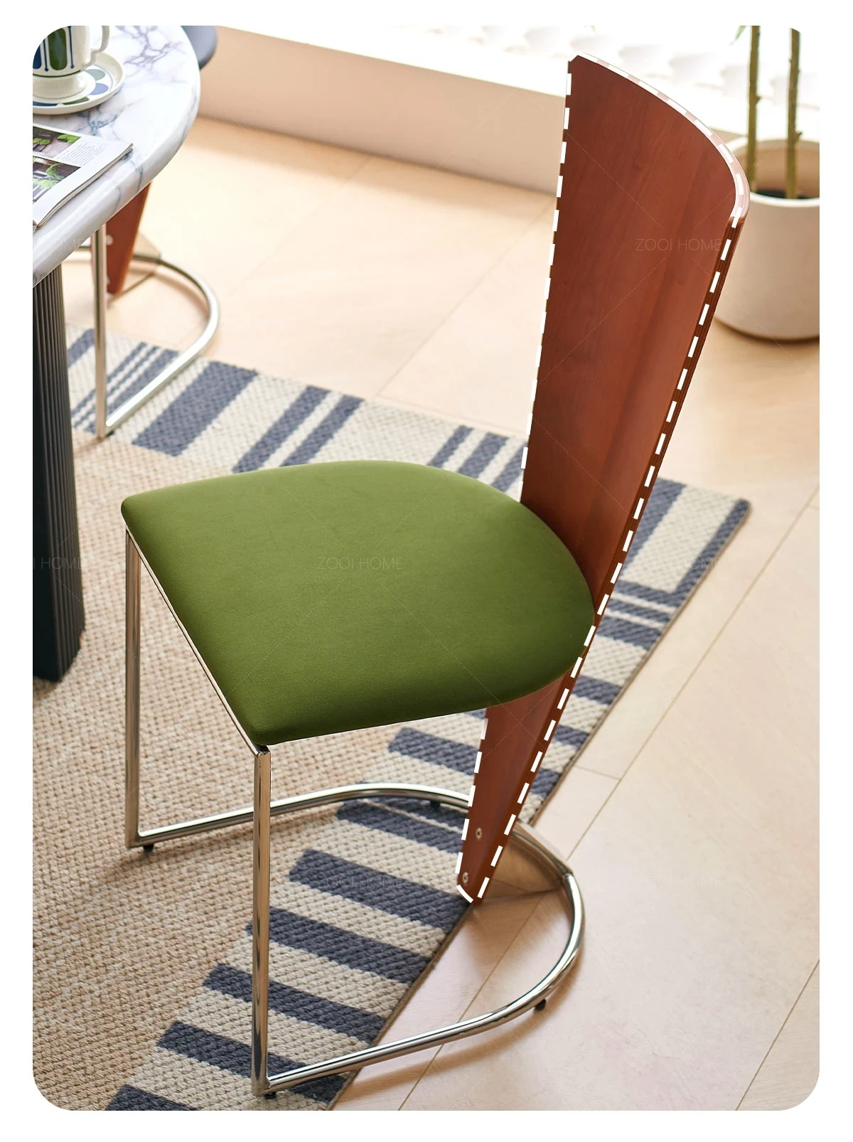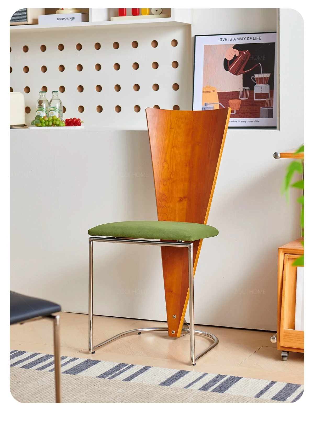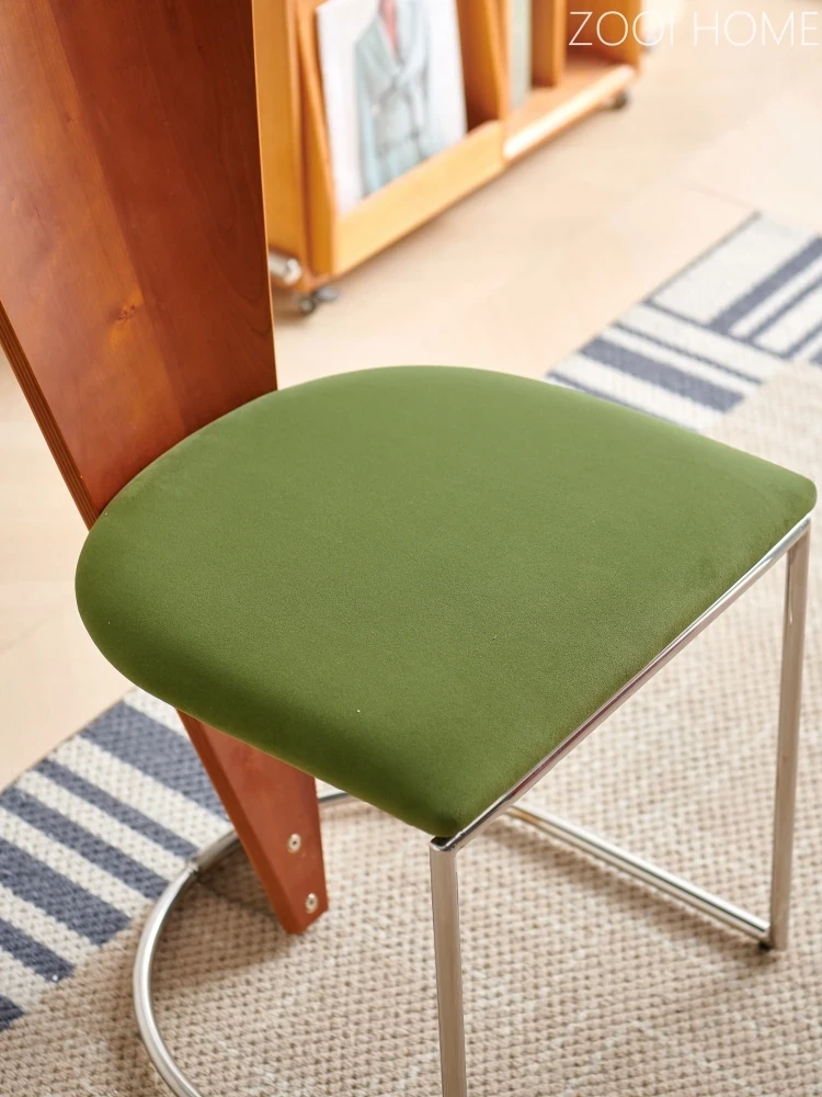ZOOI HOMEヴィンテージ風デザインの無垢材ダイニングチェア - 家庭用クリエイティブステンレススチール製、スタイリッシュな食卓椅子でおしゃれな空間を演出!