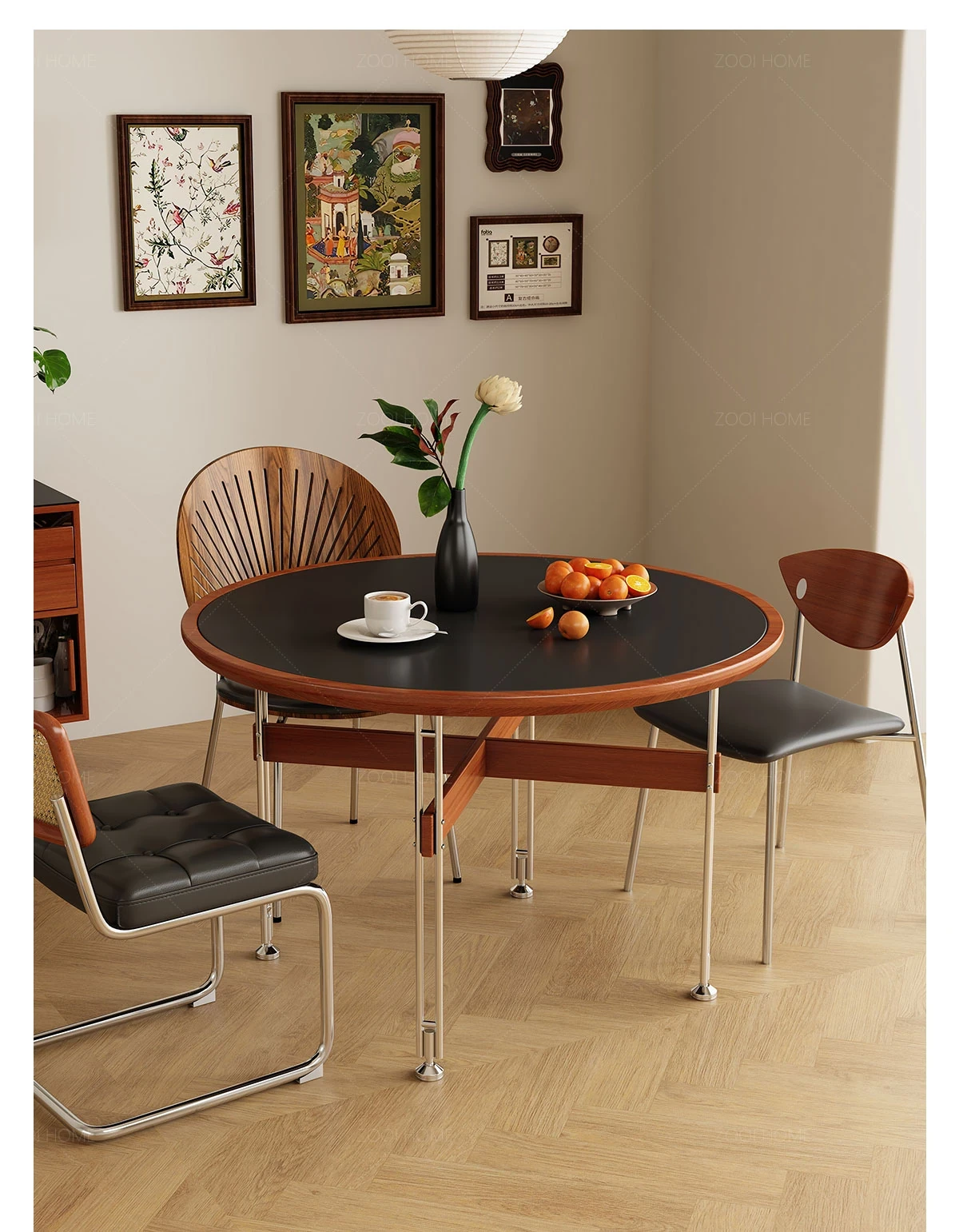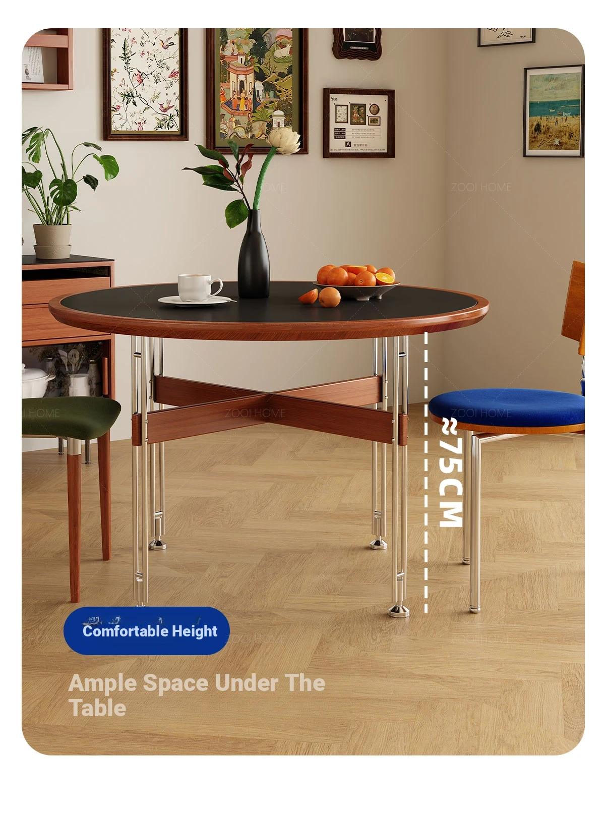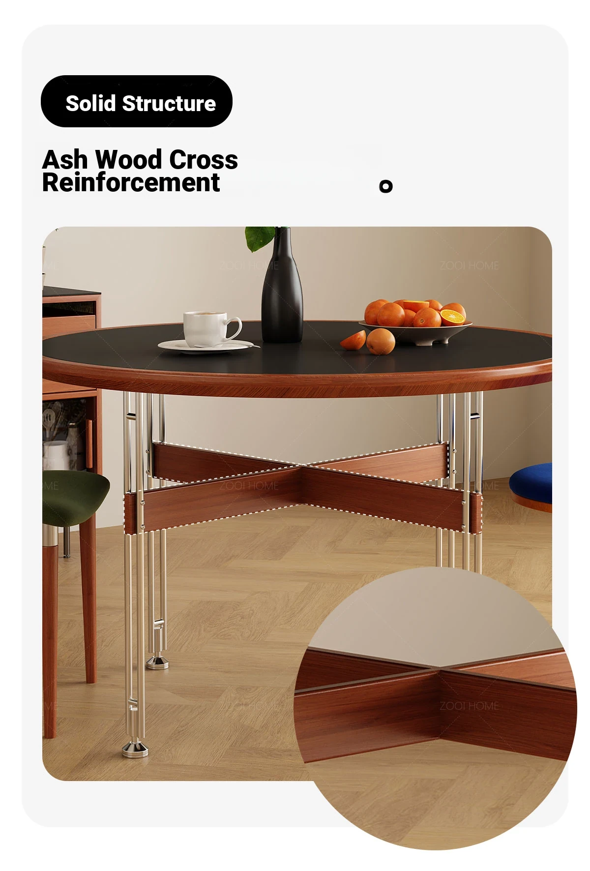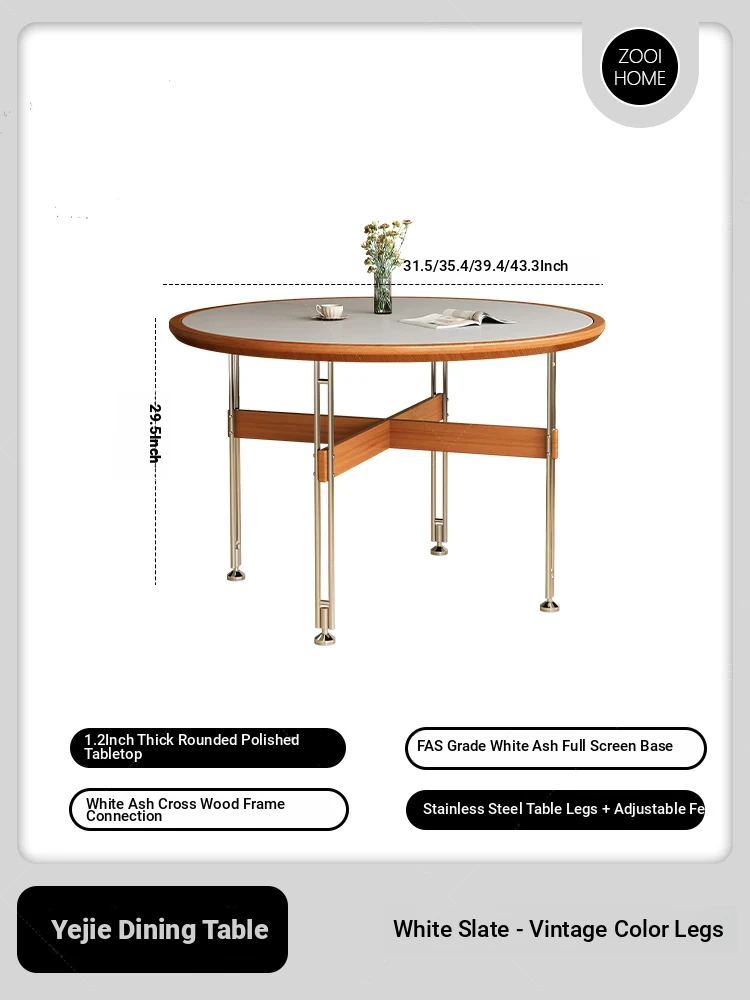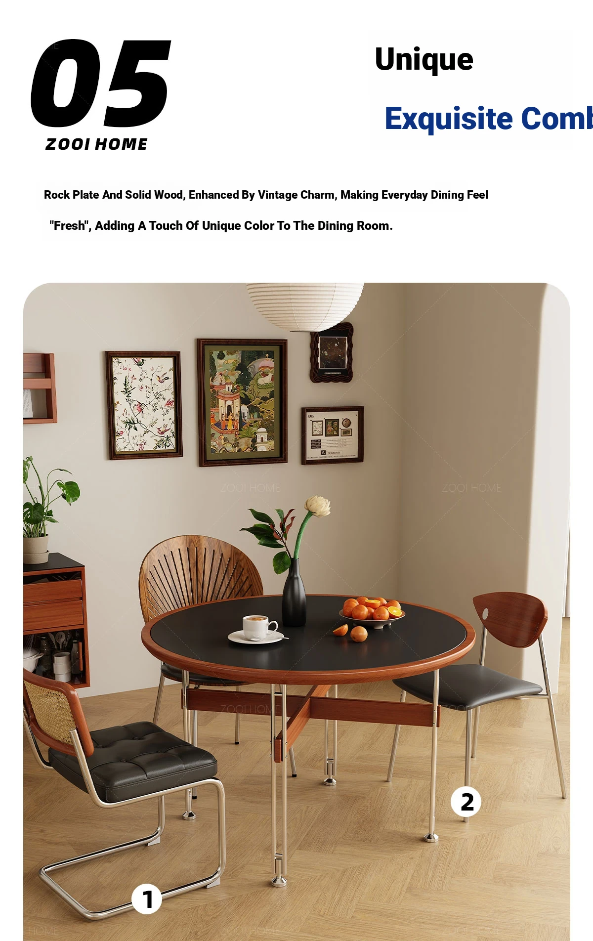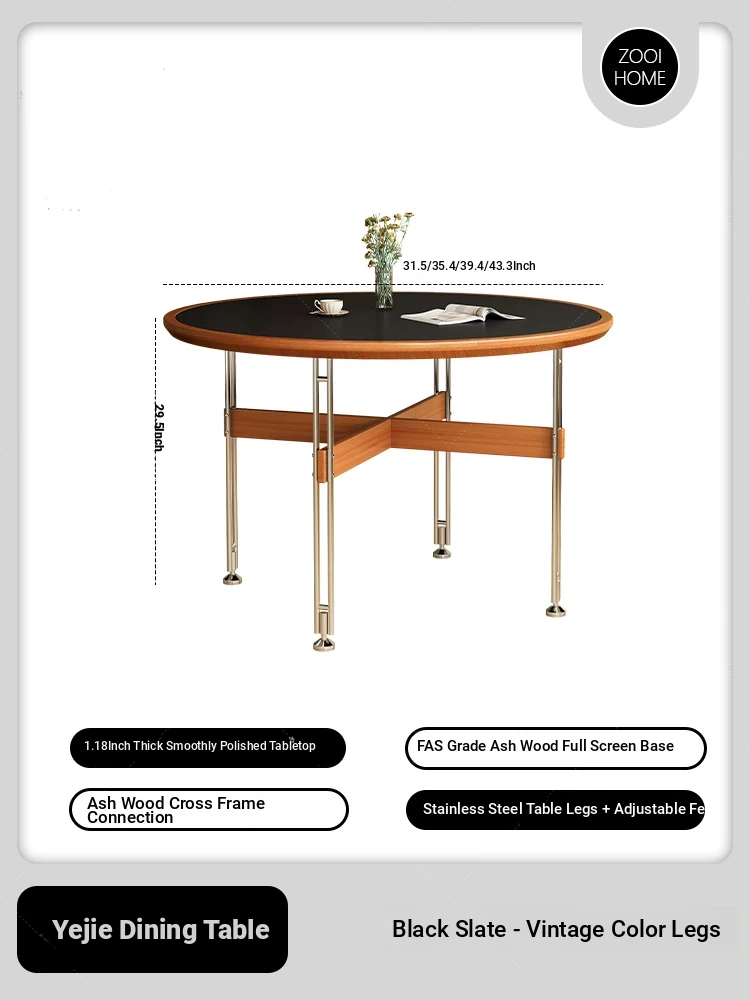 ZOOIHOME Vintage Round Dining Table for Small Spaces - Bauhaus Style Solid Ash Wood with Embedded Rock Panel - Perfect for Cozy Home Dining