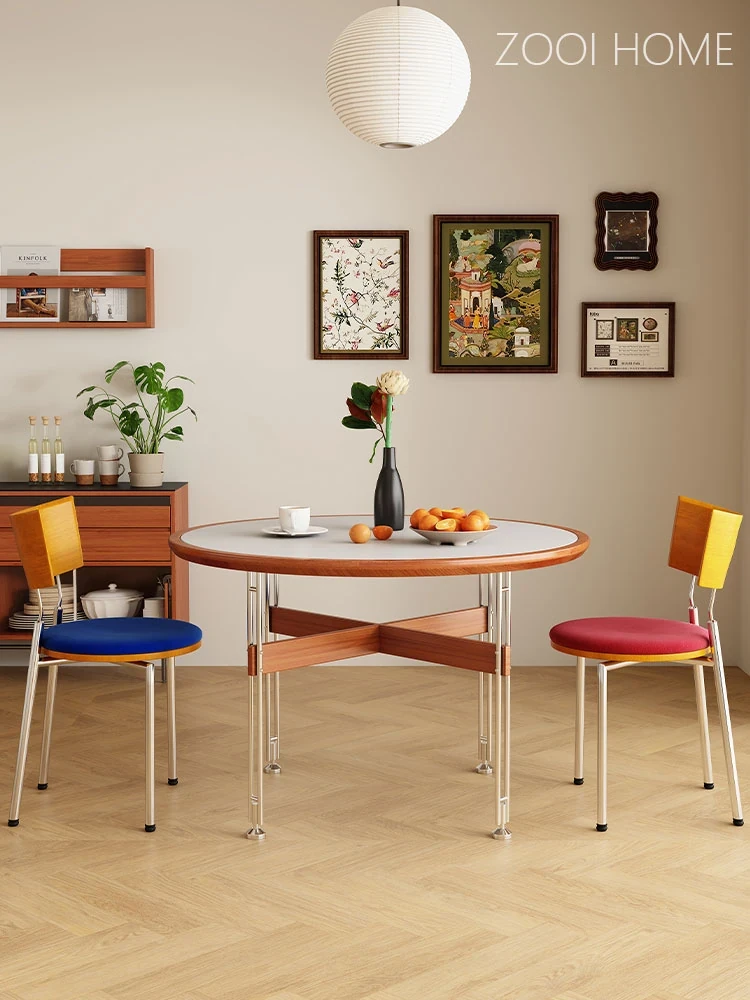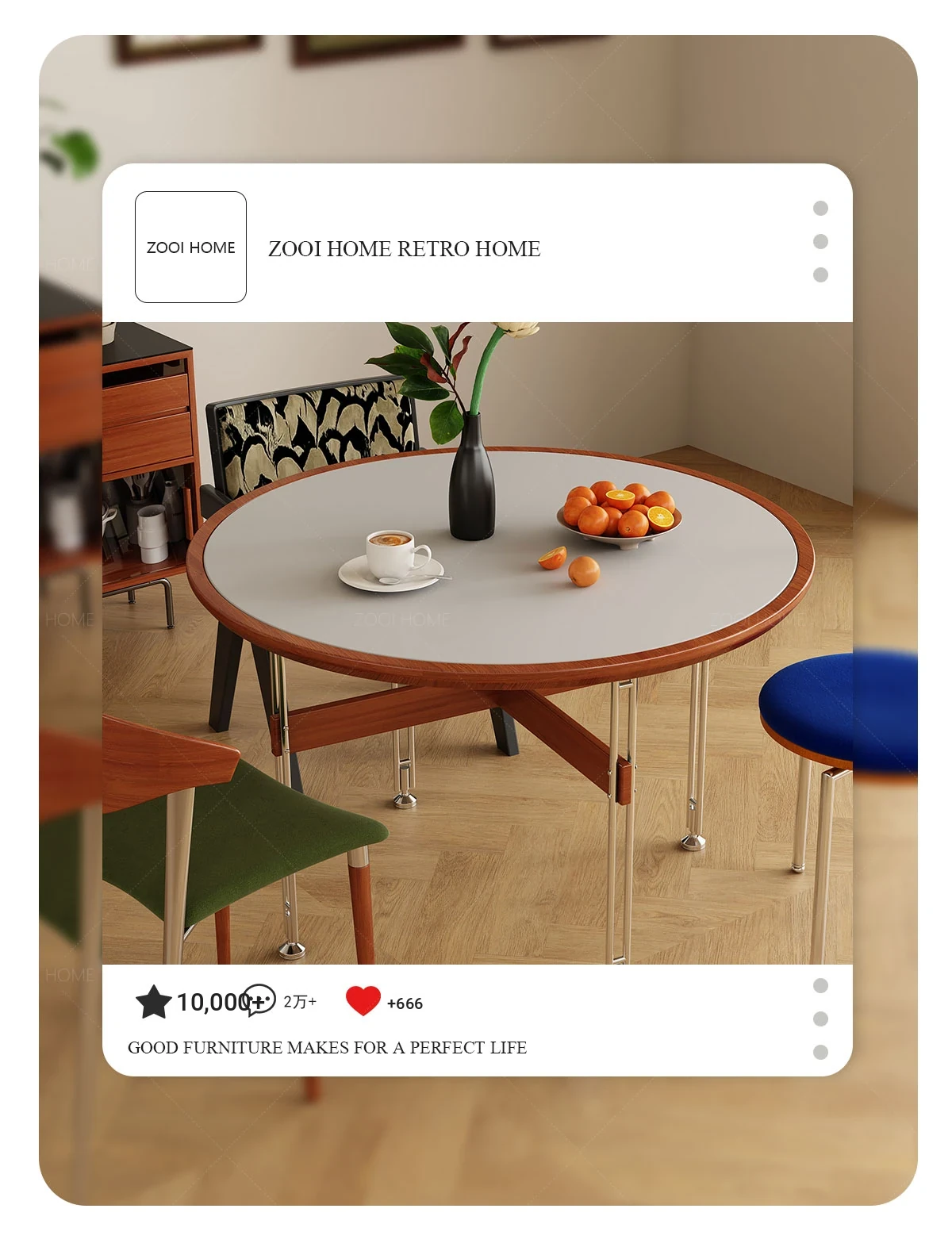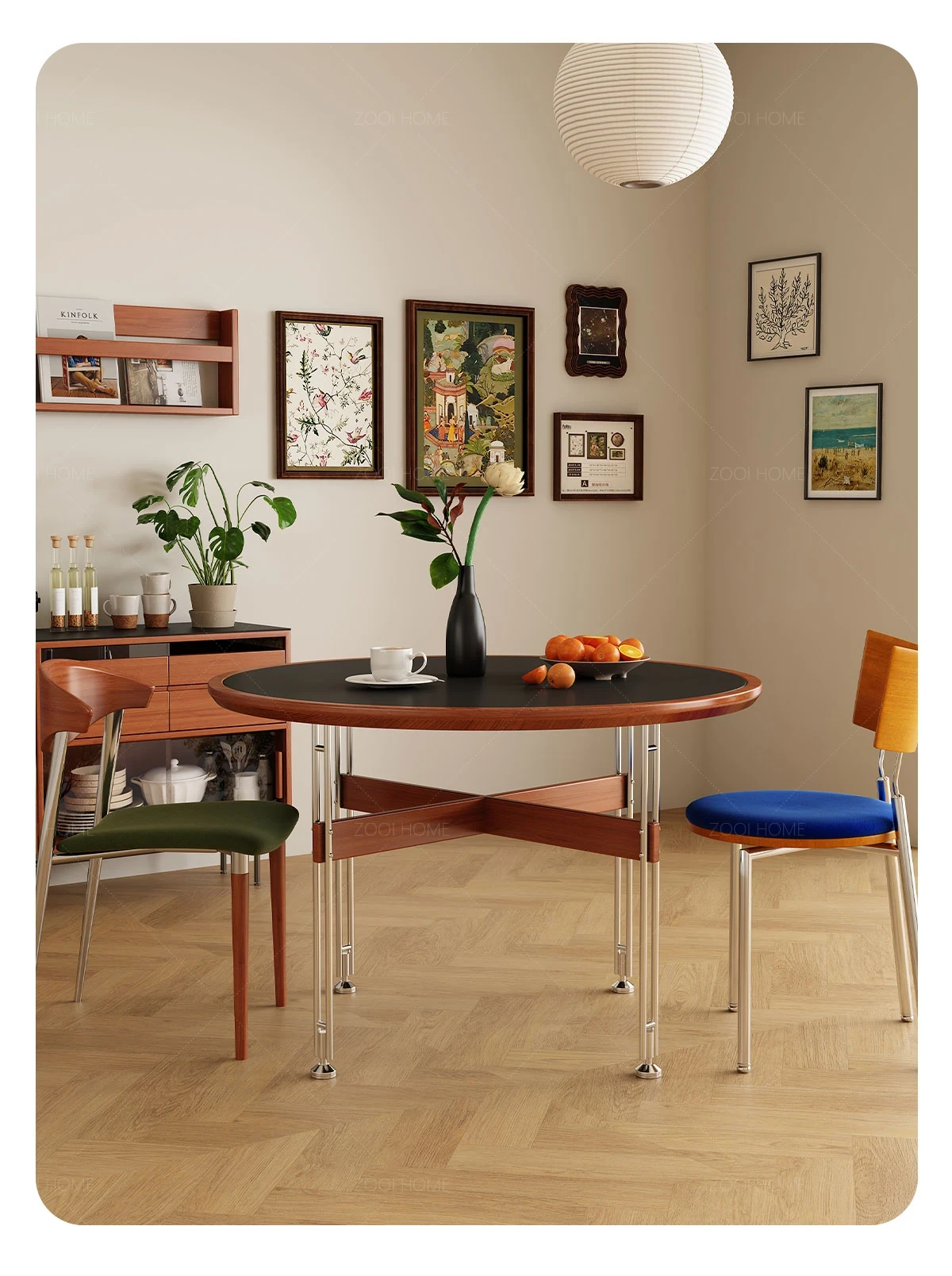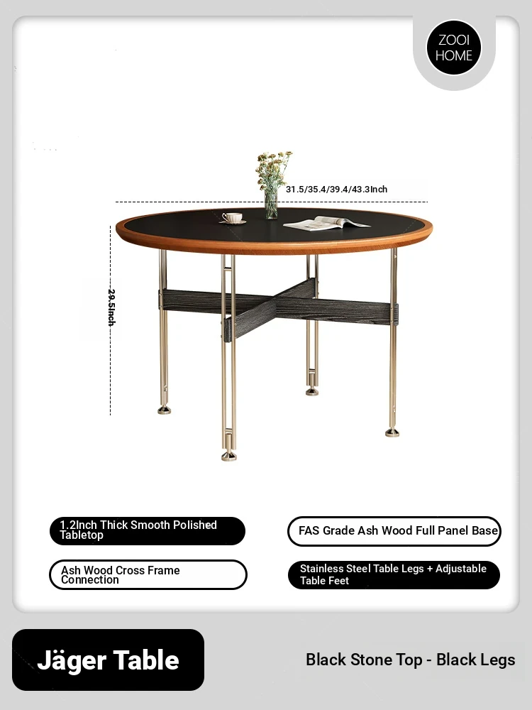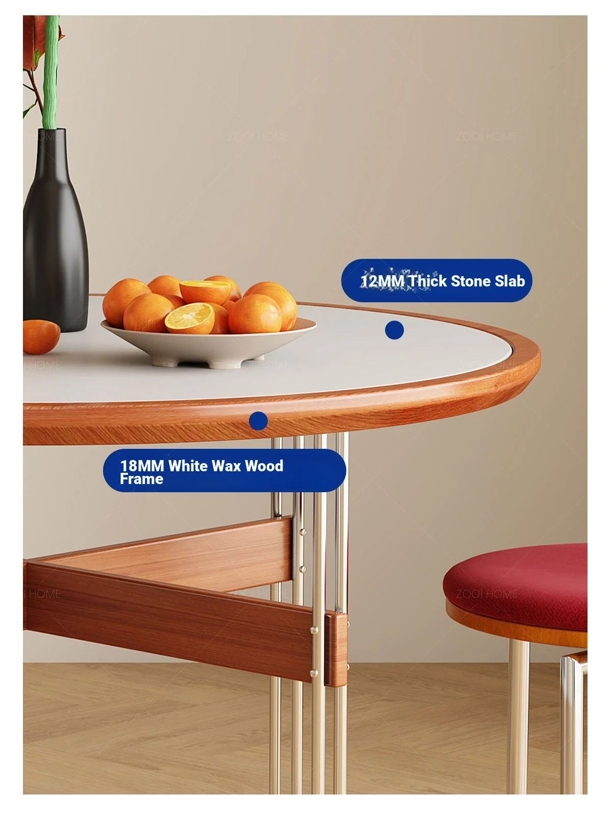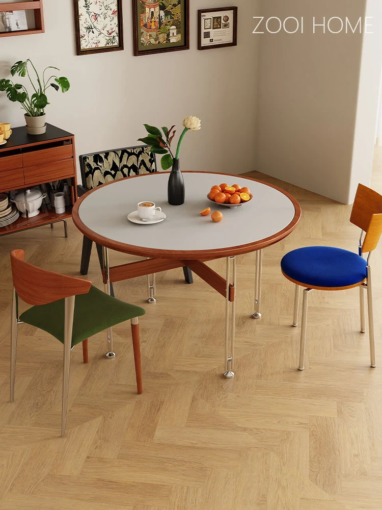 ZOOIHOME Vintage Round Dining Table for Small Spaces - Bauhaus Style Solid Ash Wood with Embedded Rock Panel - Perfect for Cozy Home Dining
