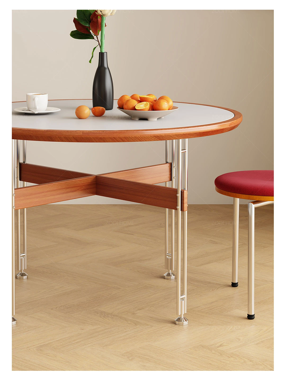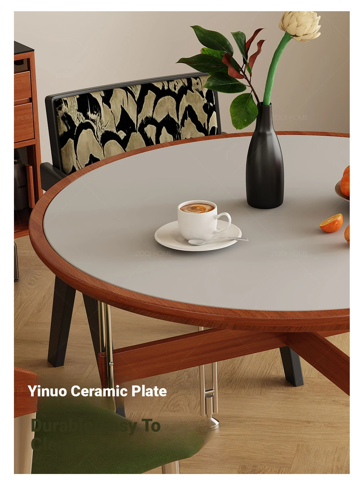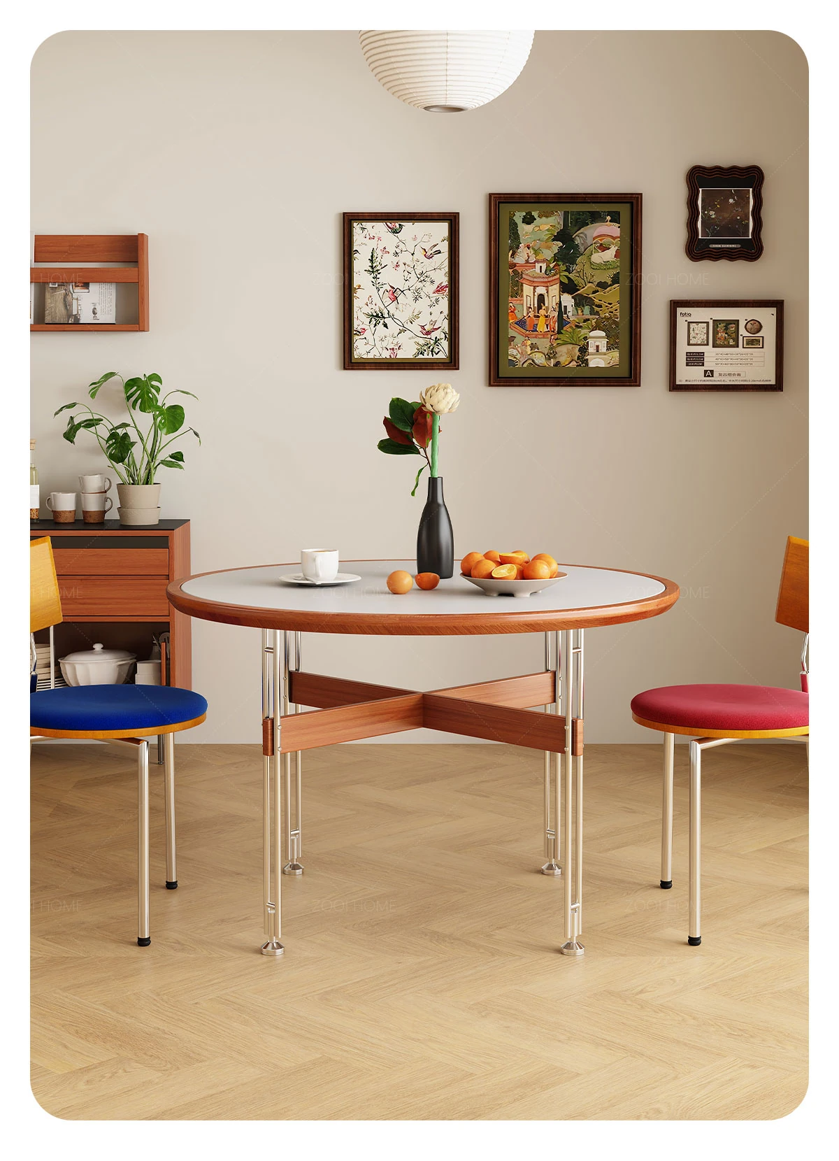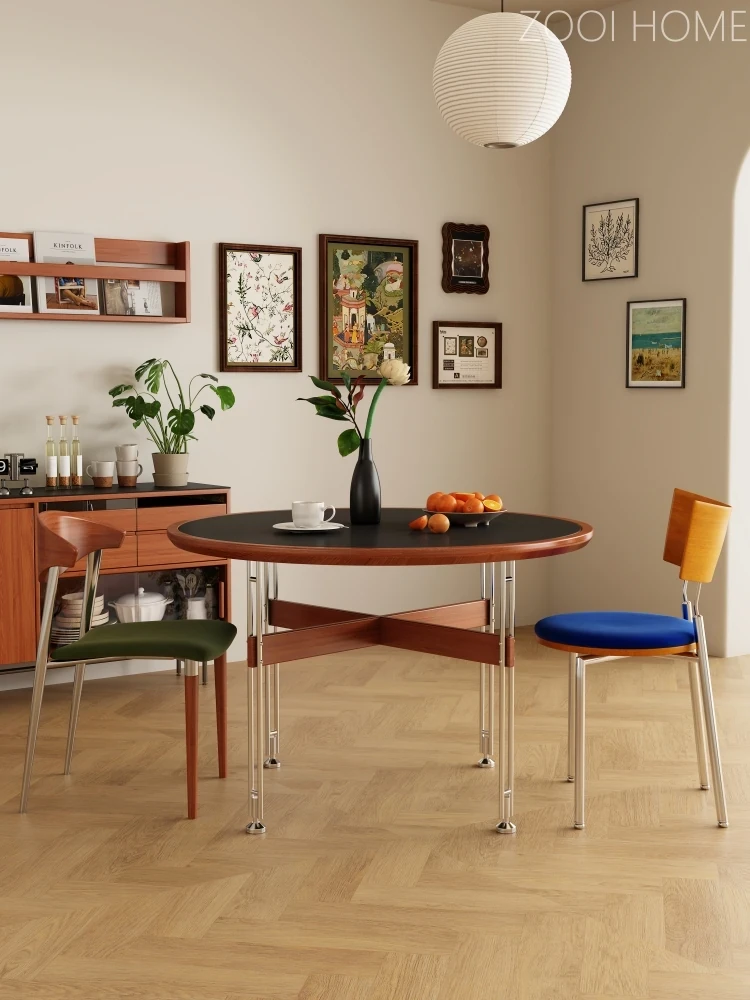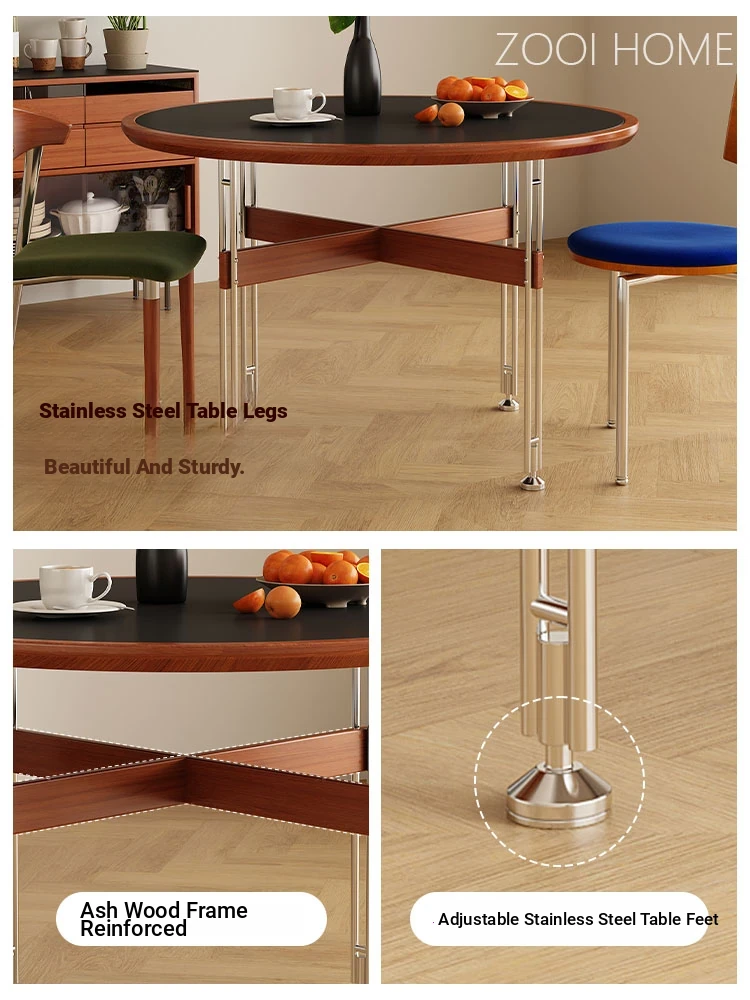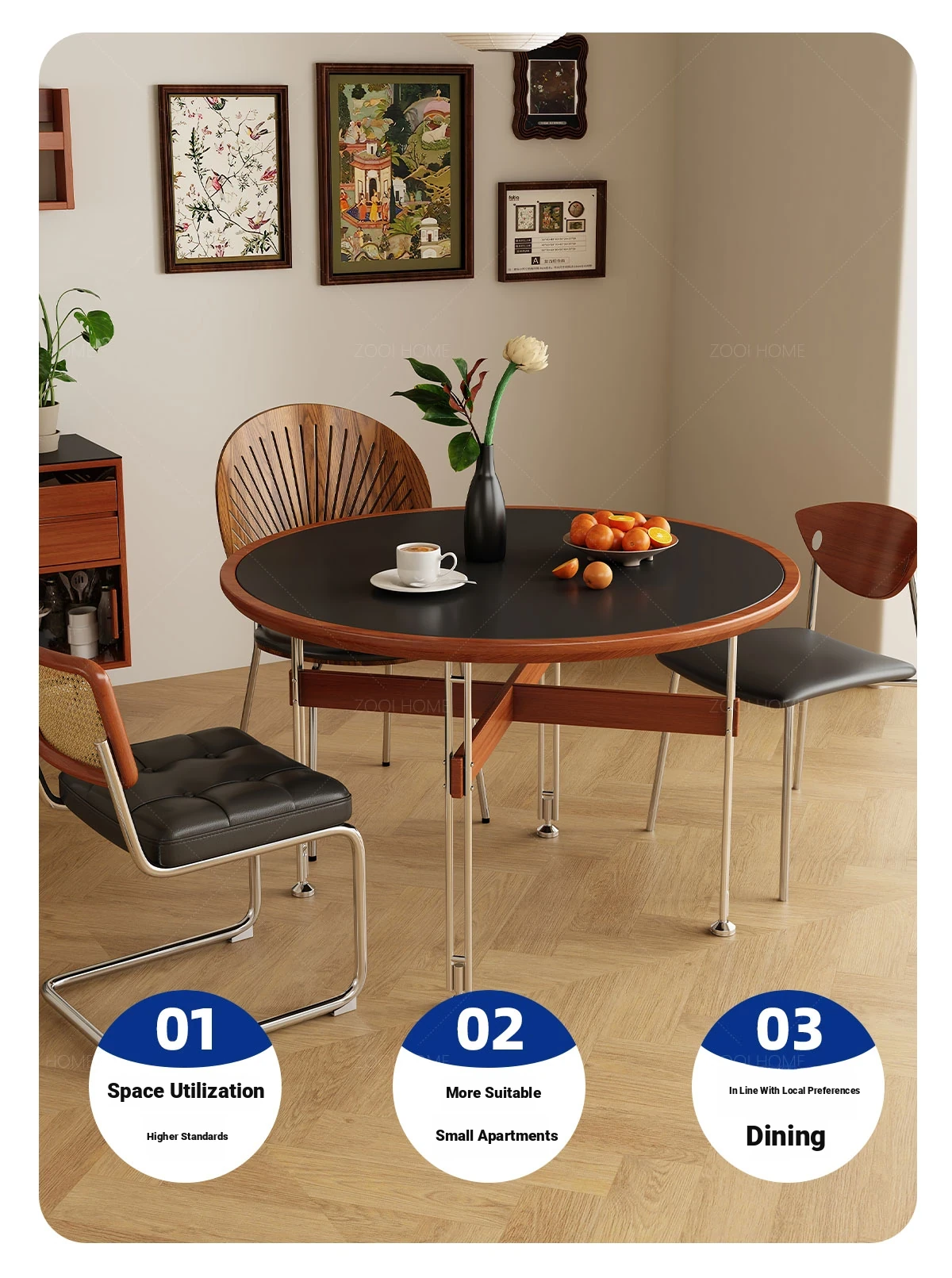ZOOIHOME Vintage Round Dining Table for Small Spaces - Bauhaus Style Solid Ash Wood with Embedded Rock Panel - Perfect for Cozy Home Dining