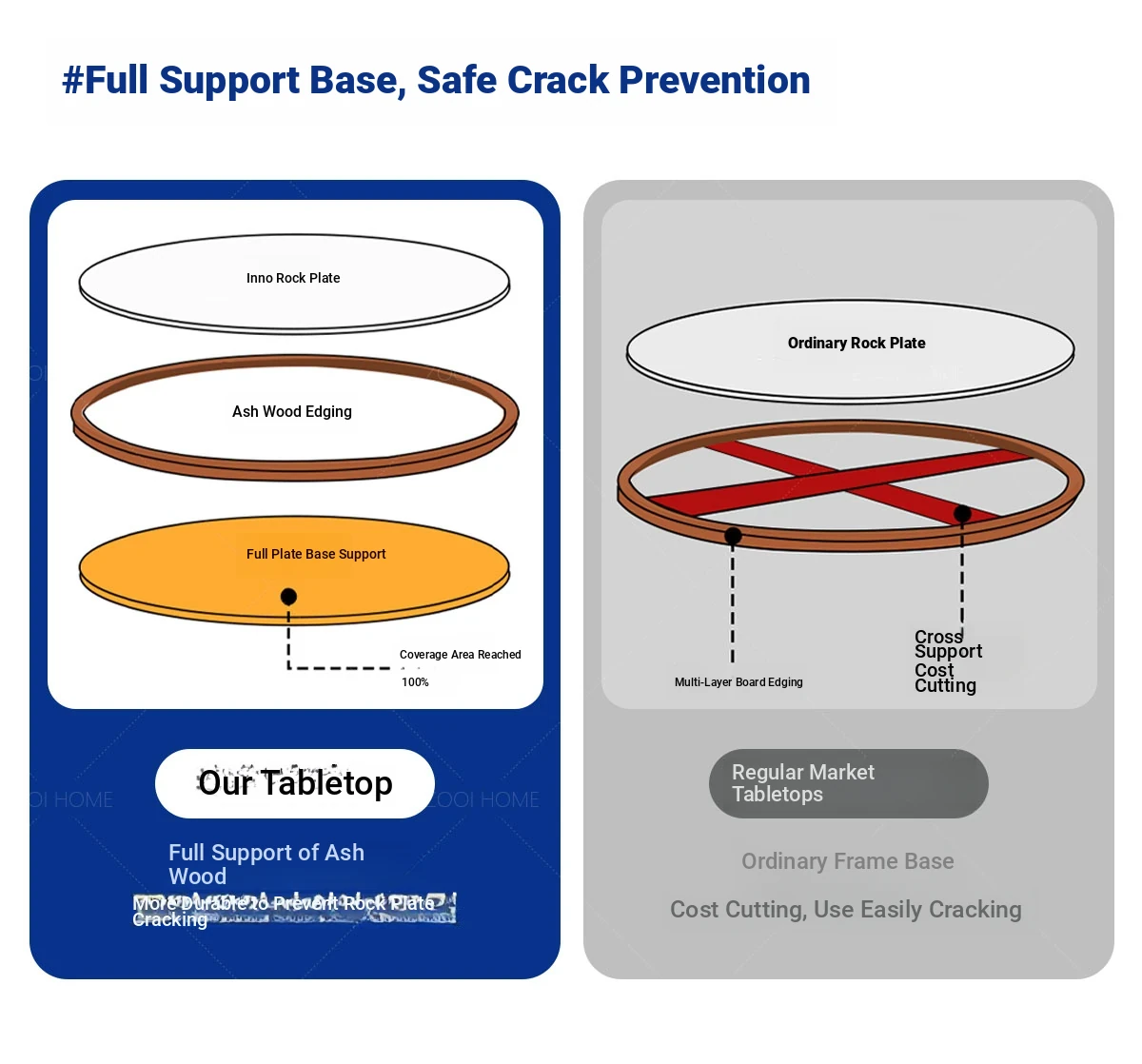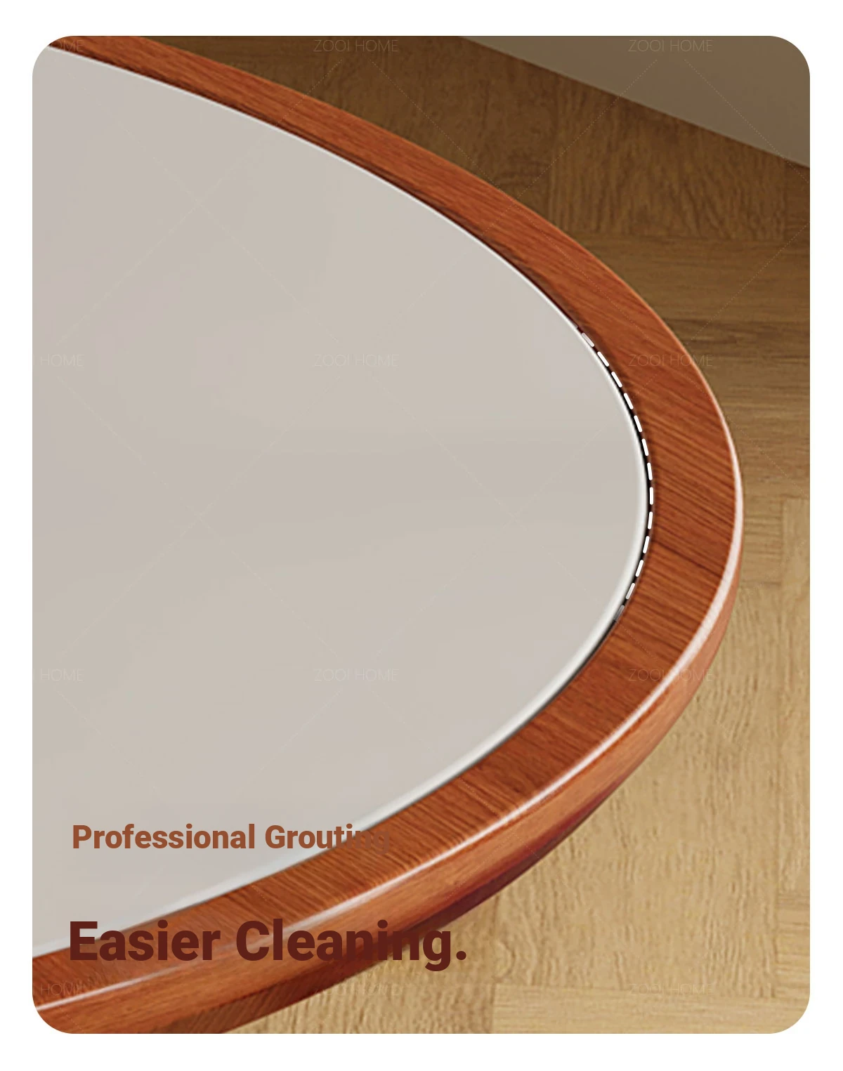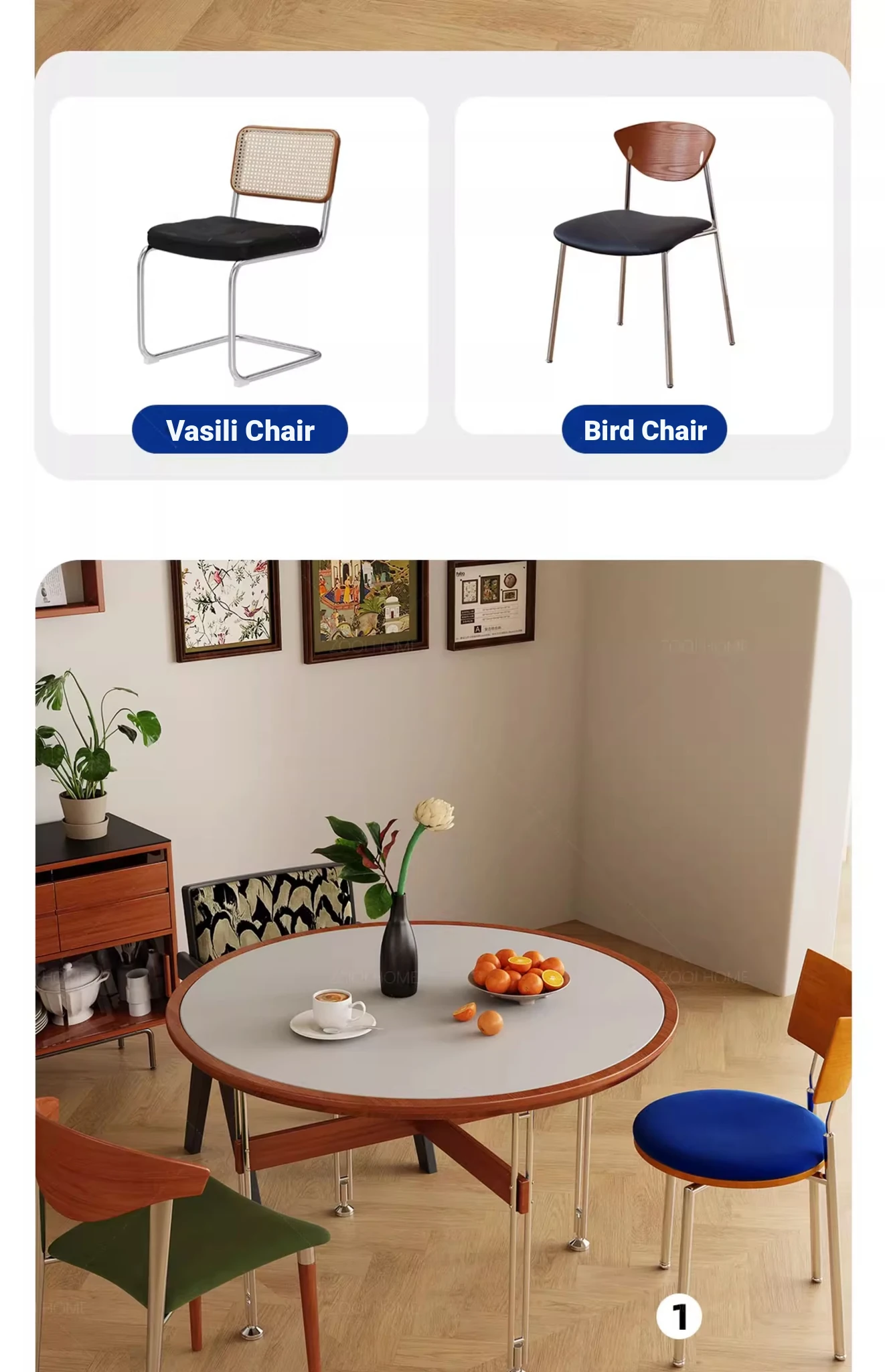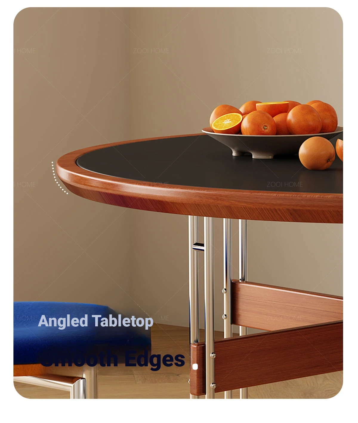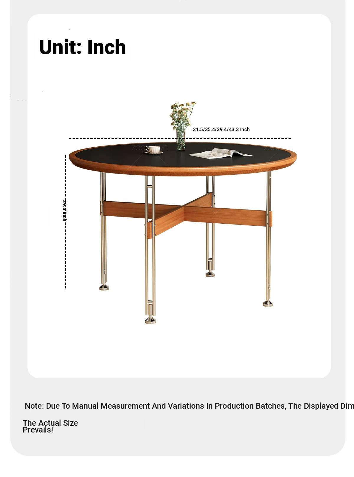 ZOOIHOME Vintage Round Dining Table for Small Spaces - Bauhaus Style Solid Ash Wood with Embedded Rock Panel - Perfect for Cozy Home Dining