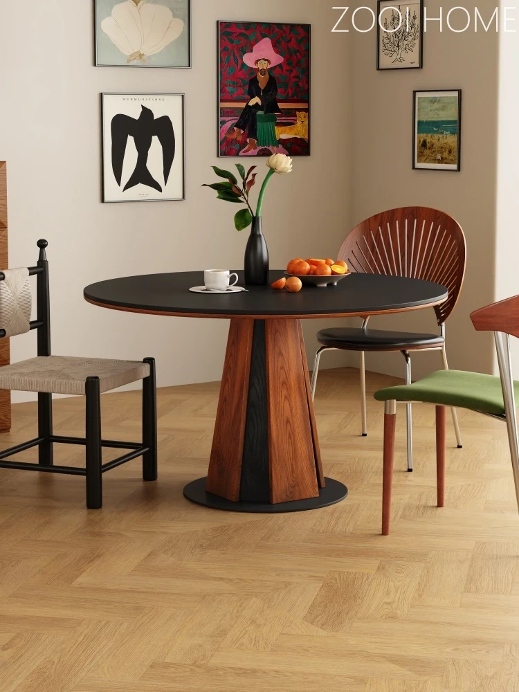 ZOOIHOME ヴィンテージ無垢材ロックボード円形テーブル 北欧スタイルのシンプルなダイニングテーブル 小さな家にぴったり 中古風の魅力が詰まった食卓