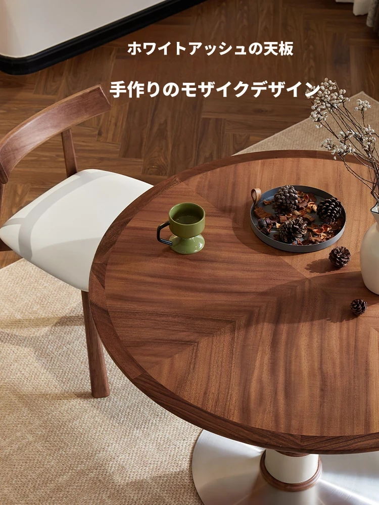 胡桃V白蜡木の岩板ダイニングテーブル - フランス風クリーム色のシンプルでモダンなデザイン、家庭用に最適な防爆長方形テーブル。高品質な無垢材を使用し、優雅さと耐久性を兼ね備えた一品です!