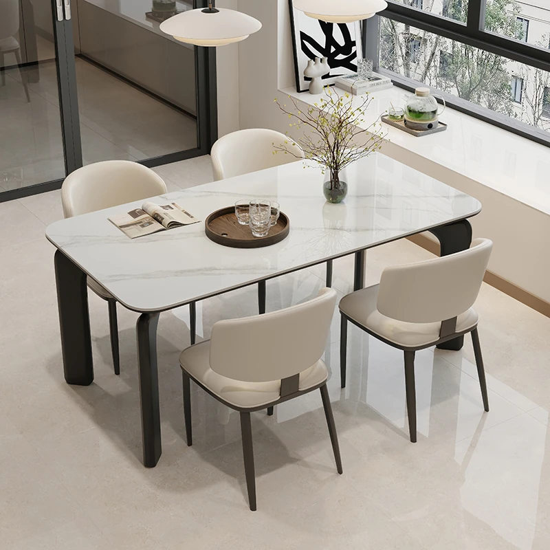 イタリアンラグジュアリー岩板ダイニングテーブル&チェアセット - スタイリッシュな小型住宅向け、ハイエンド長方形マーブルダイニングテーブルで、モダンでシンプルなデザインを楽しもう!