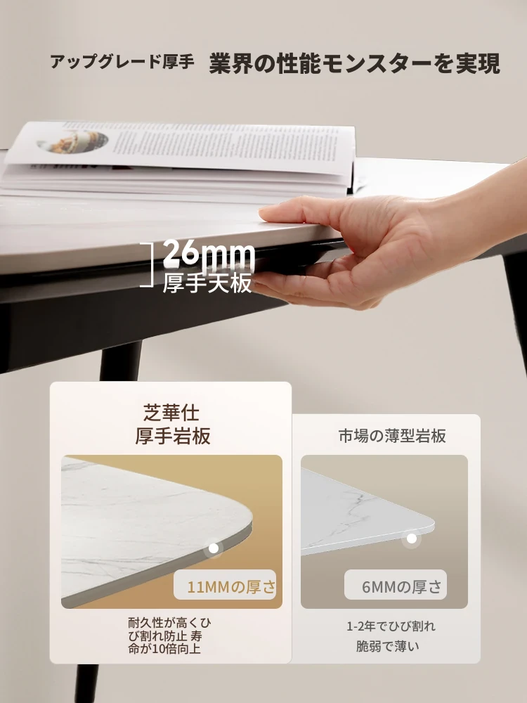 国補岩板の純白フレンチクリーム風ロングテーブル - 小型住宅に最適な現代的でミニマルなラグジュアリーなダイニングテーブル。おしゃれな空間を演出し、心地よい食卓体験を提供します!