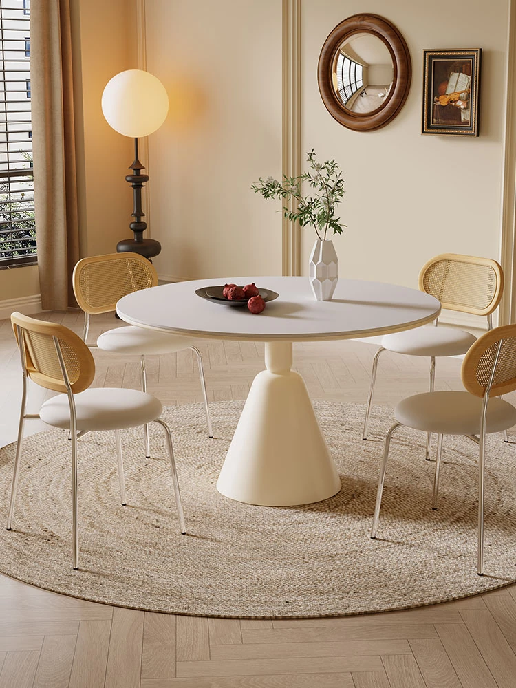 ZOOI HOME Creamy Round Dining Table – Chic French Vintage Style with Elegant Stone Finish for Living Room – Perfect for Unique Home Decor and Upscale Dining Experience