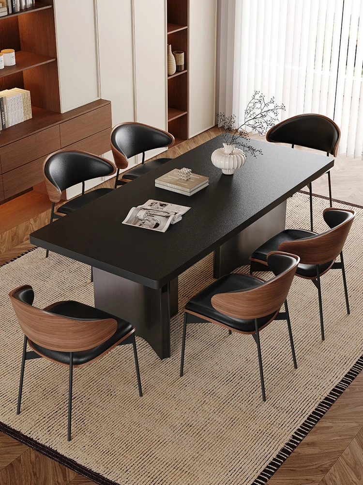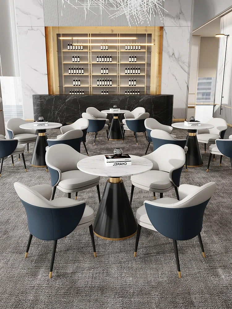 Elegant Modern Rock Panel Conference Table and Chair Set - Perfect for Hotels, Business Meetings, Sales Offices, and Reception Areas - One Table with Four Chairs for Sophisticated Negotiations and Client Engagement.