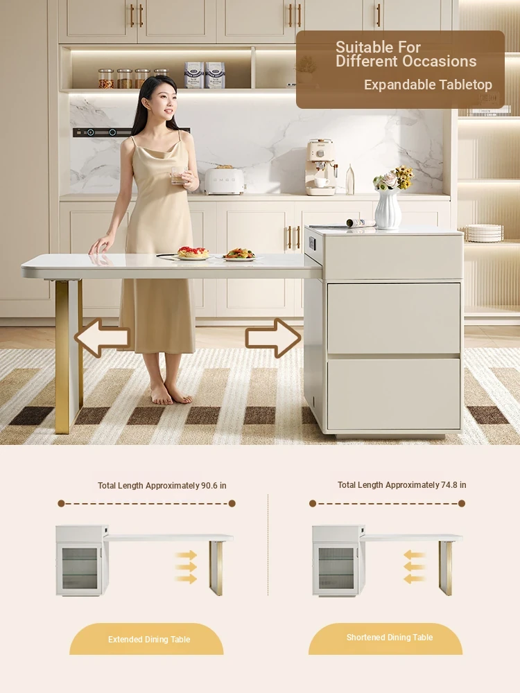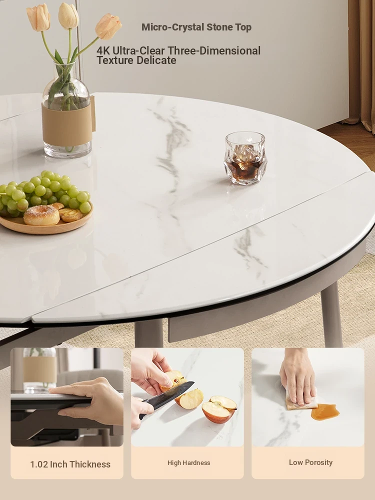 Modern Light Luxury Round Dining Table with Induction Cooktop - Versatile Expandable and Foldable Design for Home Use, Perfect for Any Dining Experience