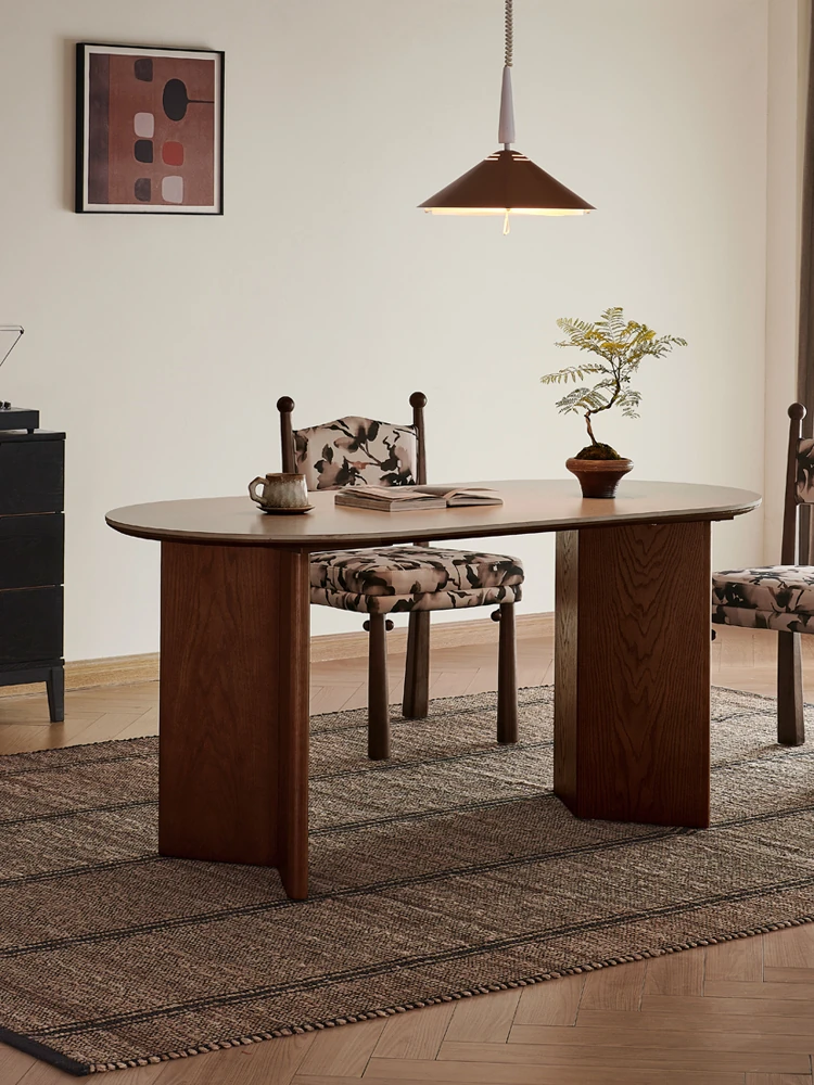 Nordic Solid Wood Dining Table and Chair Set - Walnut Color, Modern Minimalist Rectangular Dining Table for Home, Vintage Style