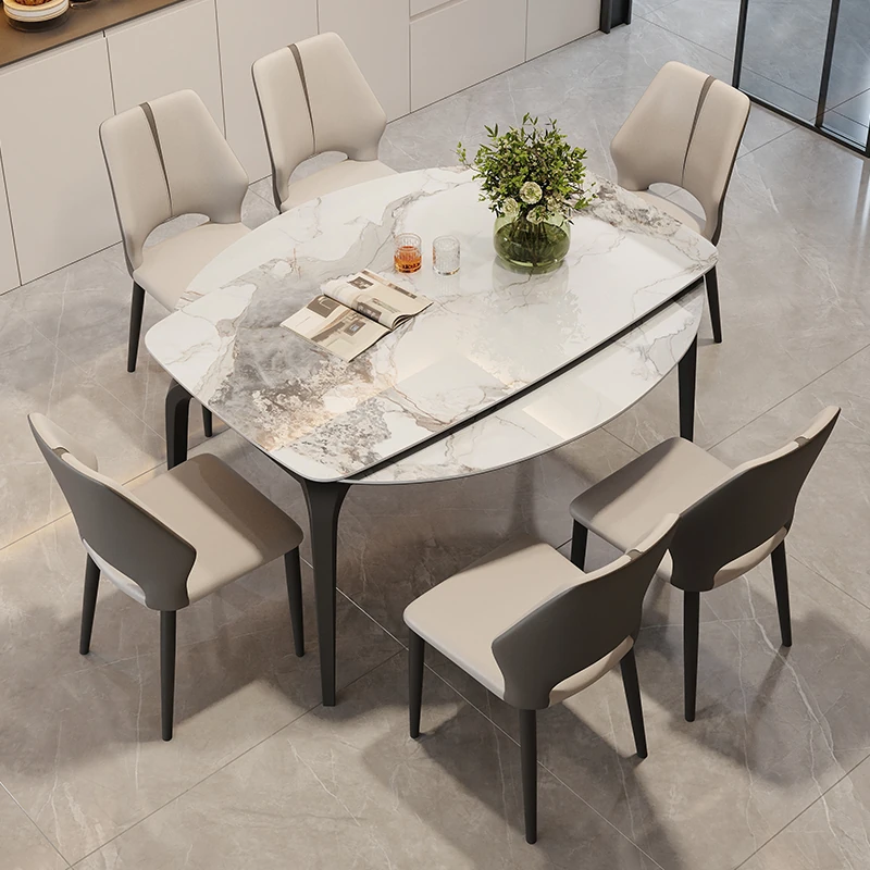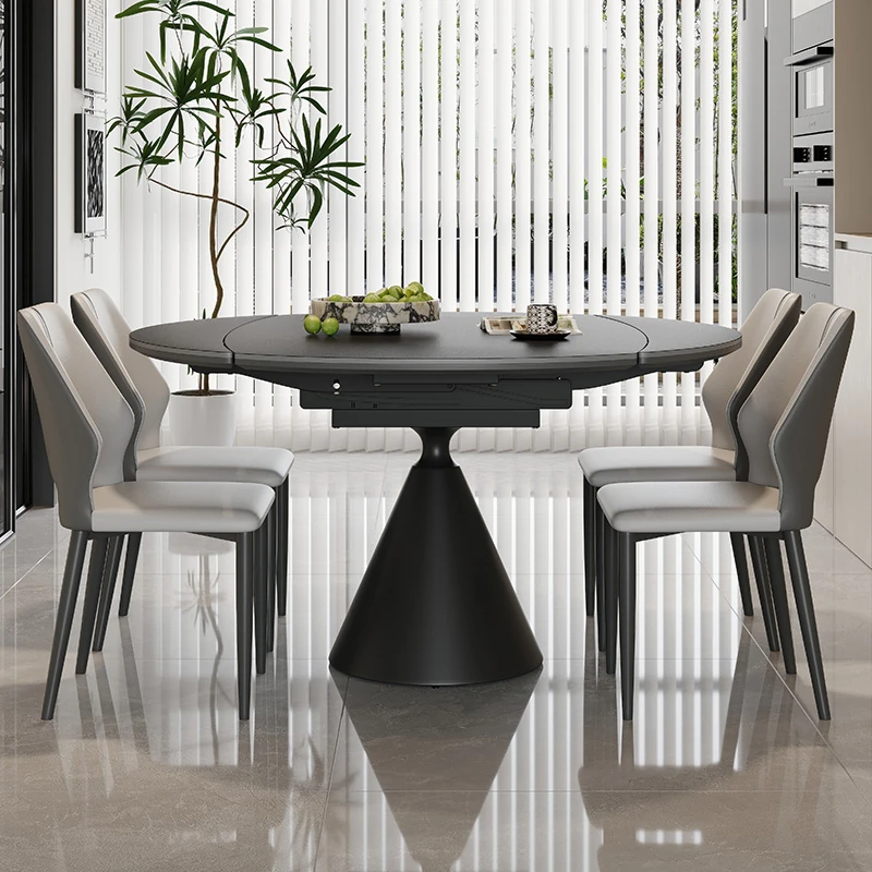 Expandable Rock Plate Dining Table – Versatile Round Table for Home, Modern Minimalist Design, Foldable Dining Table and Chair Set, Perfect for Small Spaces with Convertible Square and Round Options.