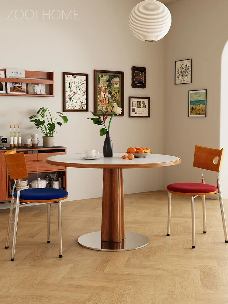 Wooden Vintage French Style Round Dining Table with Solid Rock Plate - Perfect for Small Spaces, Retro Design for Cozy Dining Experiences