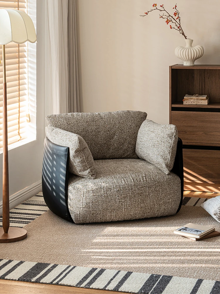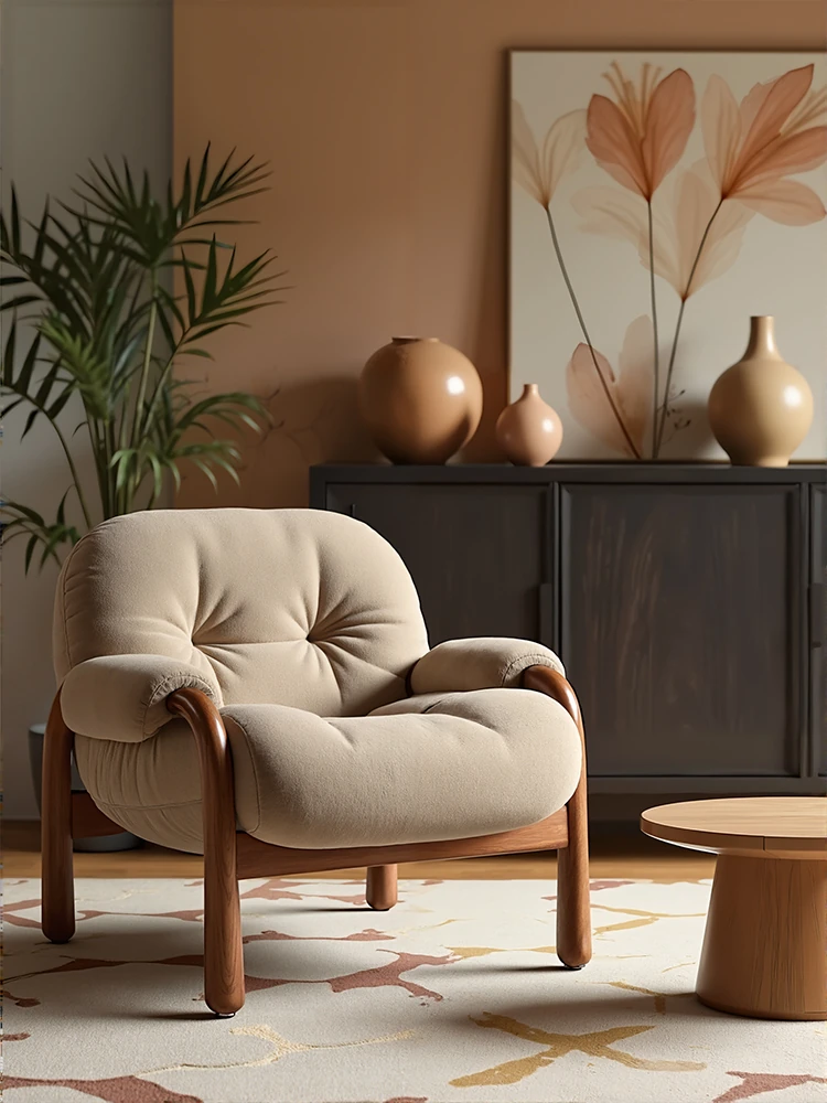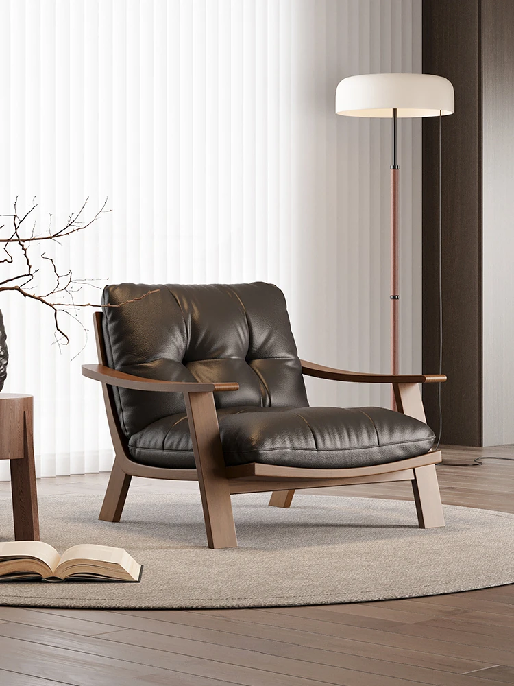 侘寂風デザインの無垢材一人掛けソファ椅子 - 中古のリビングやバルコニーに最適!デザイナーの創意が光る休憩用の背もたれ付きチェア。おしゃれな民宿にもぴったり!