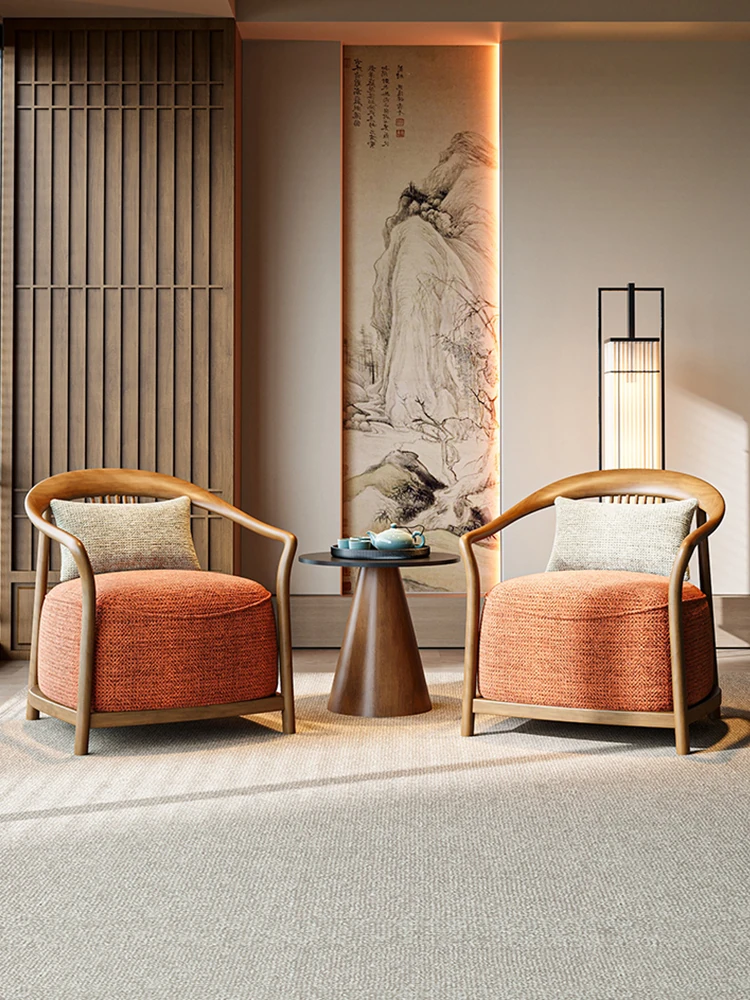 宋氏美学デザインの一人用リラックスチェア - 天然木製の新中式禅スタイル、茶室に最適なティーチェア、オーナーのための優雅なひとときを提供します!